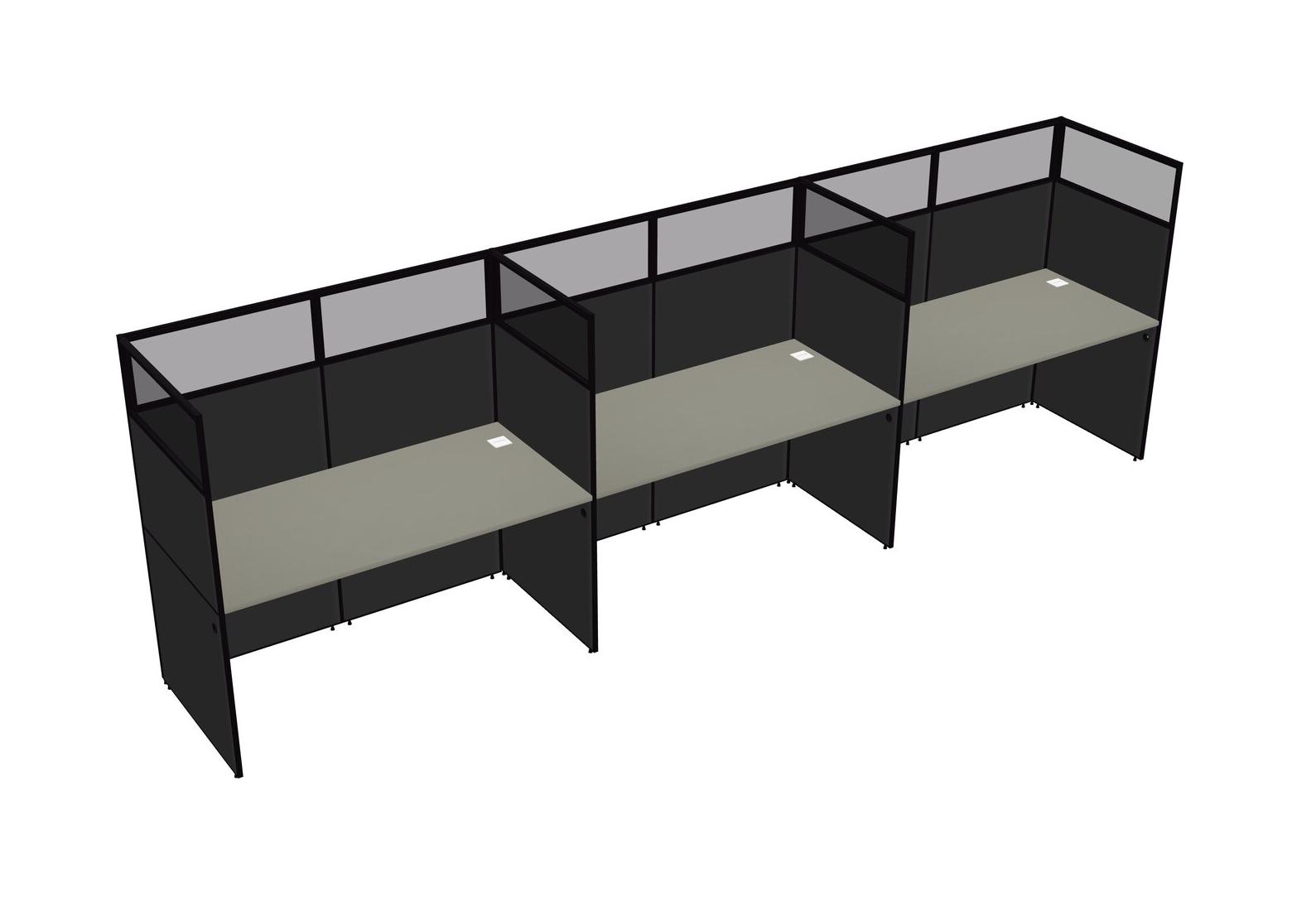 Grey Shadows Shared Rectangular Office Cubicle Panel System For 3 Persons