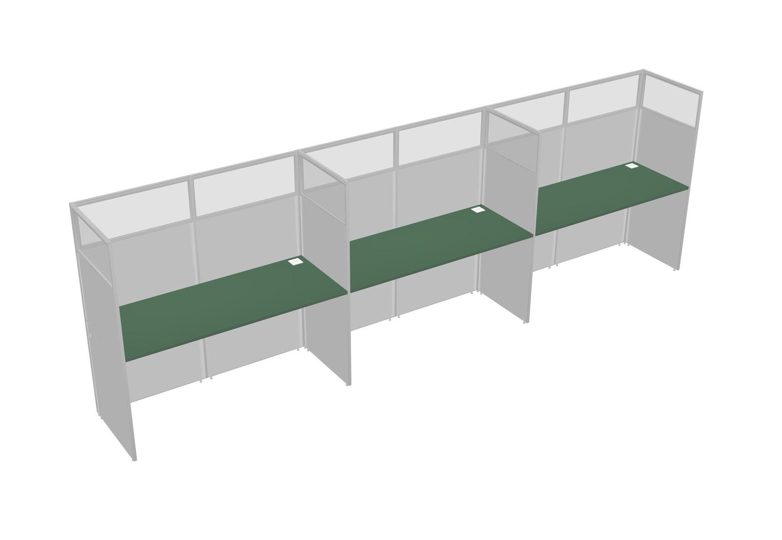 Green Shared Rectangular Office Cubicle Panel System For 3 Persons