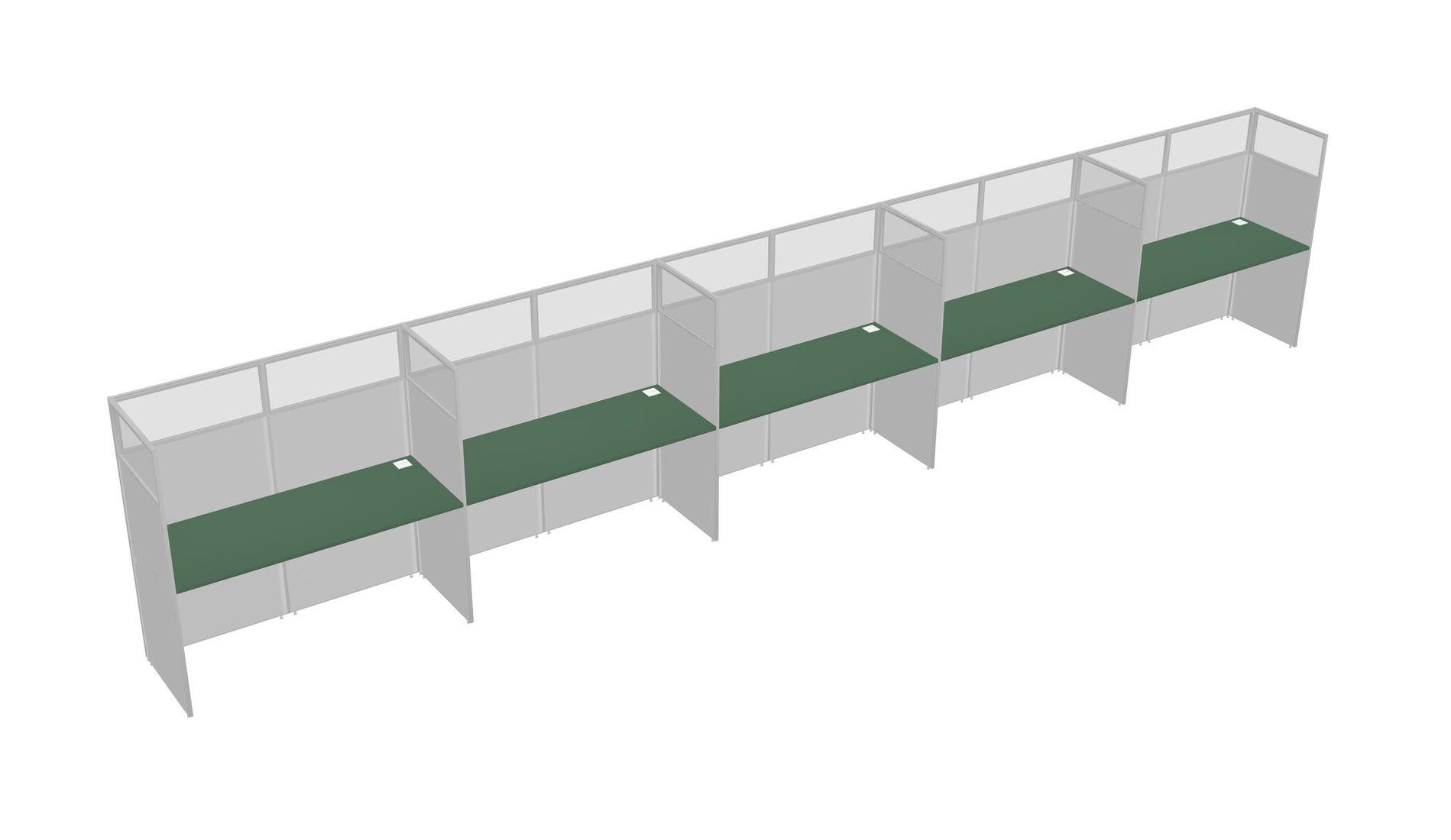 Green Shared Rectangular Office Cubicle Panel System For 5 Persons