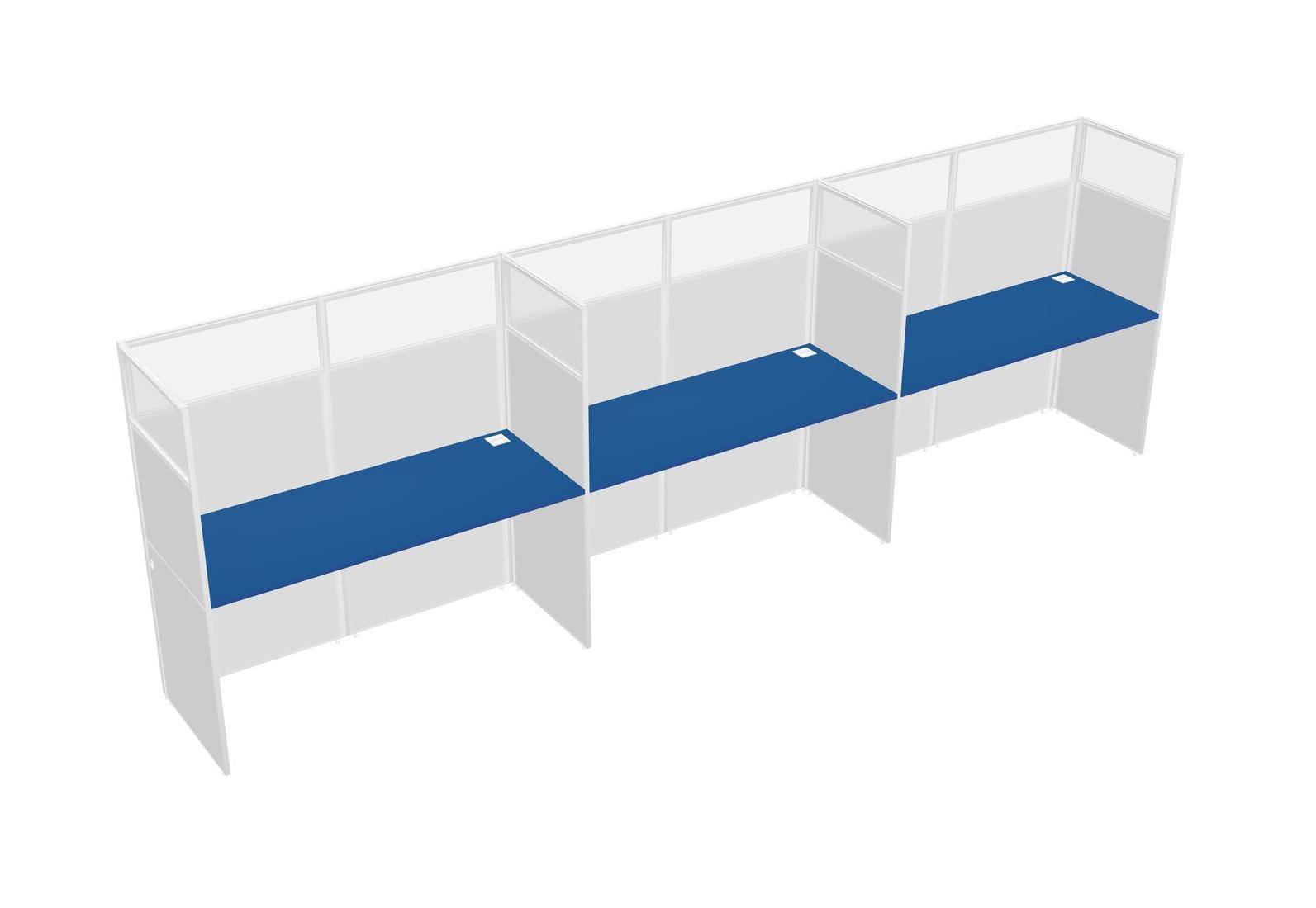 Prism Blue Shared Rectangular Office Cubicle Panel System For 3 Persons