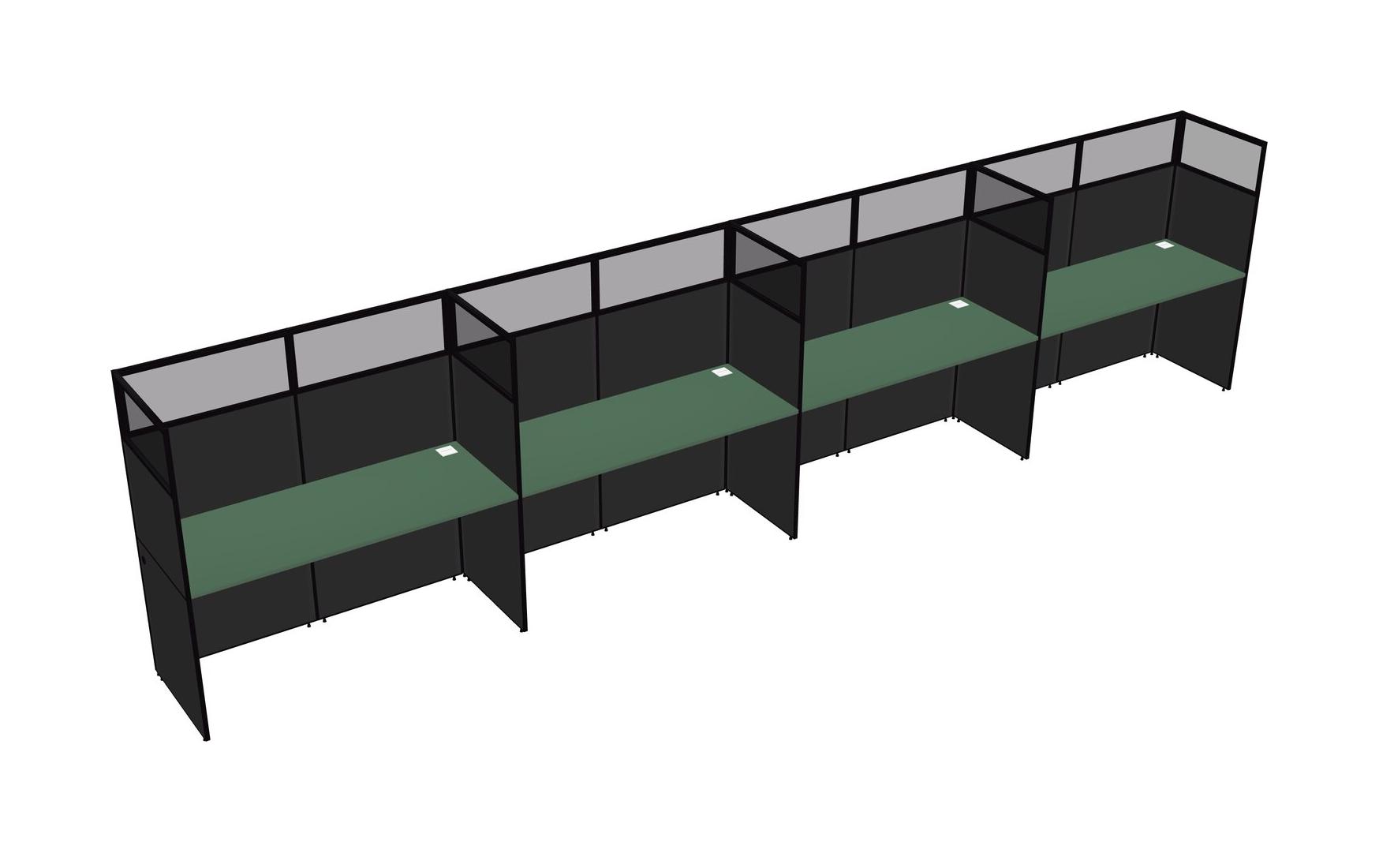 Green Shared Rectangular Office Cubicle Panel System For 4 Persons
