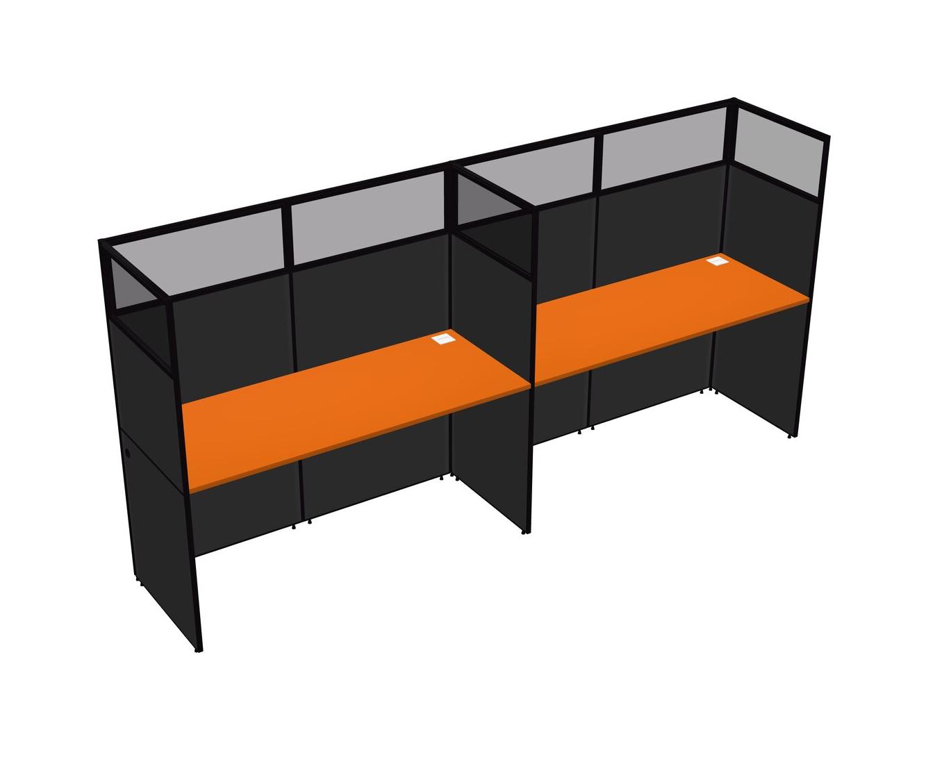 Orange Shared Rectangular Office Cubicle Panel System For 2 Persons