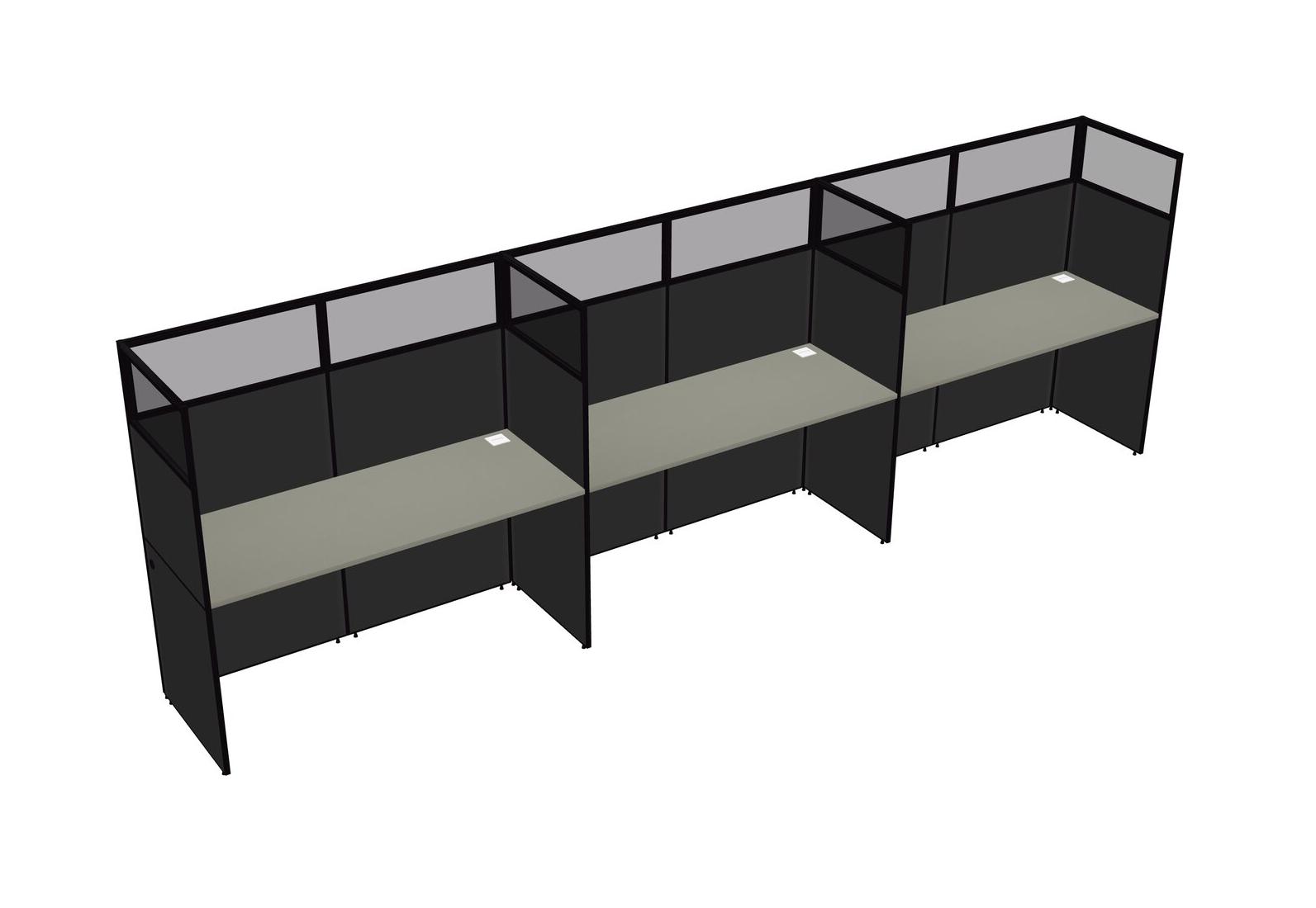 Grey Shadows Shared Rectangular Office Cubicle Panel System For 3 Persons