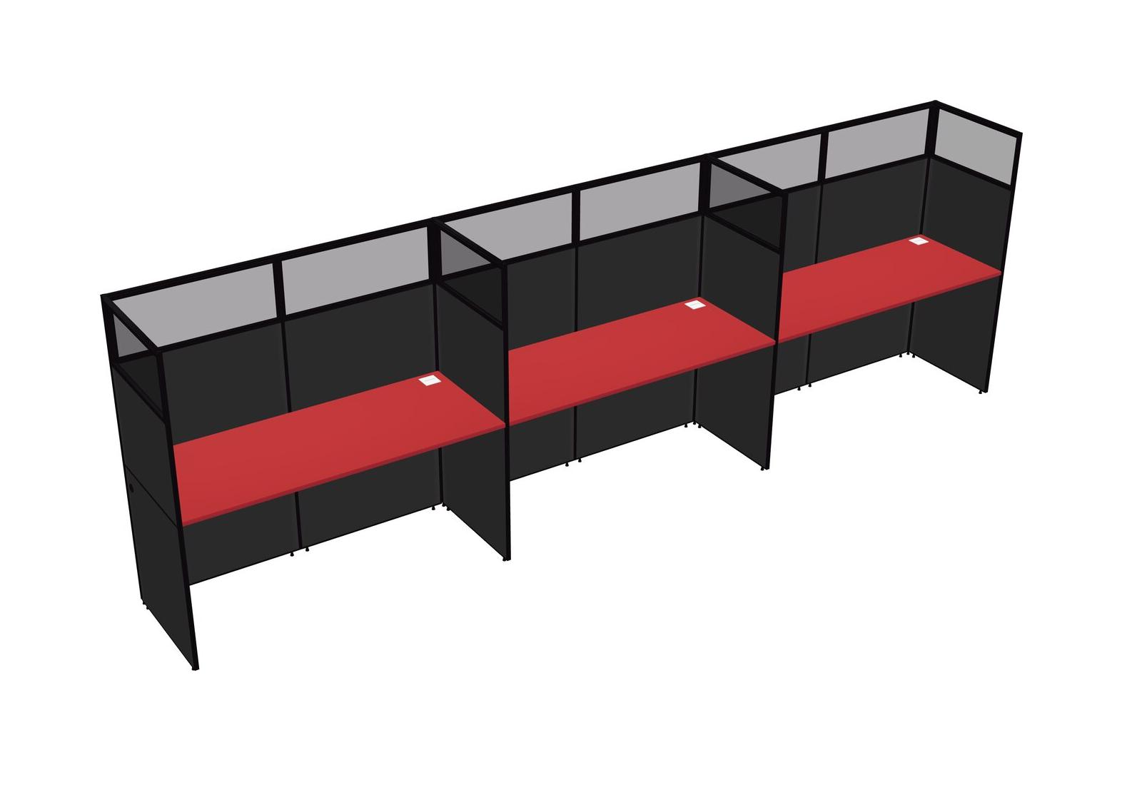Prism Red Shared Rectangular Office Cubicle Panel System For 3 Persons