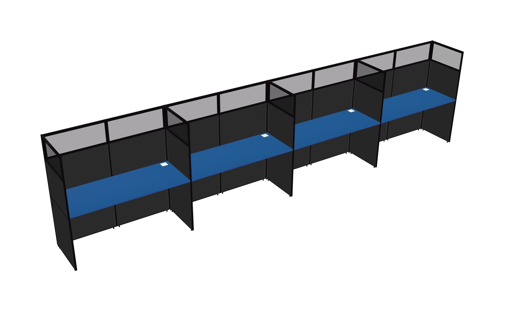 Prism Blue Shared Rectangular Office Cubicle Panel System For 4 Persons