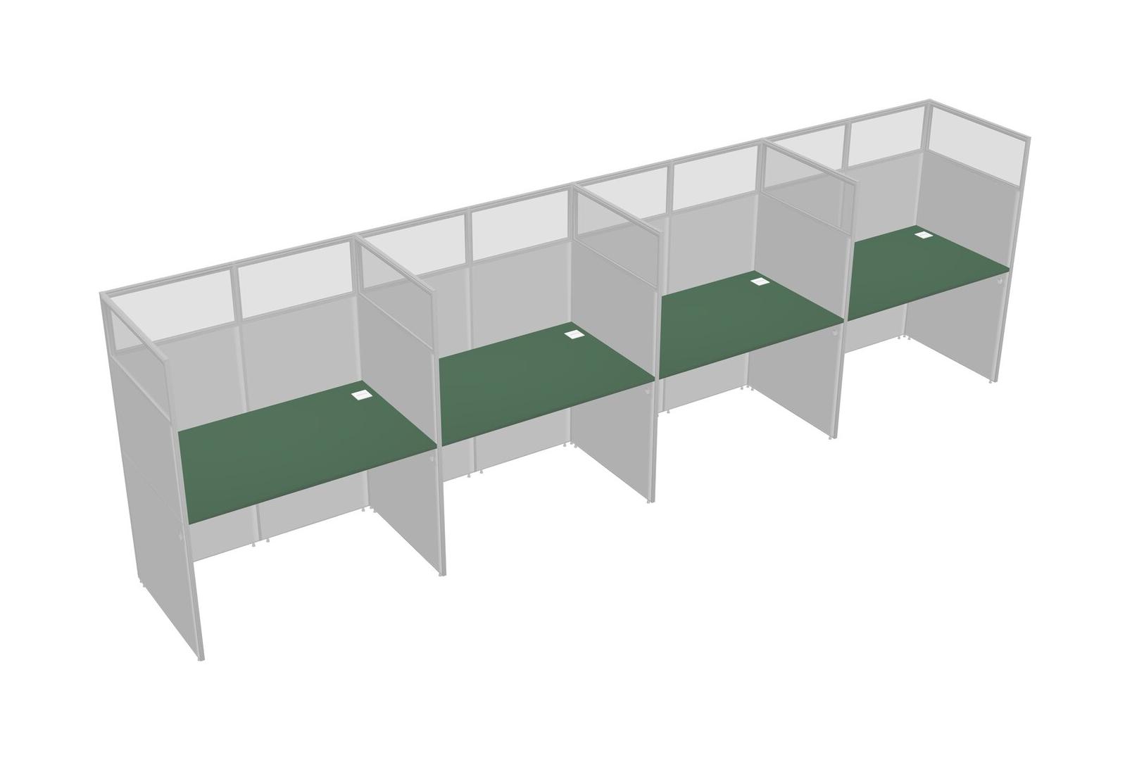 Green Shared Rectangular Office Cubicle Panel System For 4 Persons
