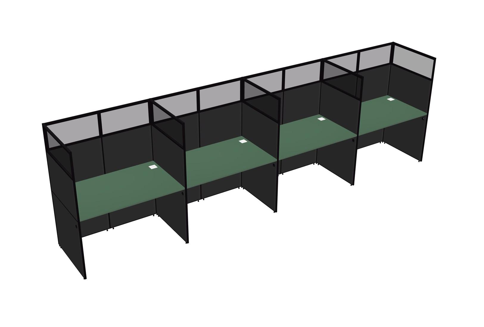 Green Shared Rectangular Office Cubicle Panel System For 4 Persons