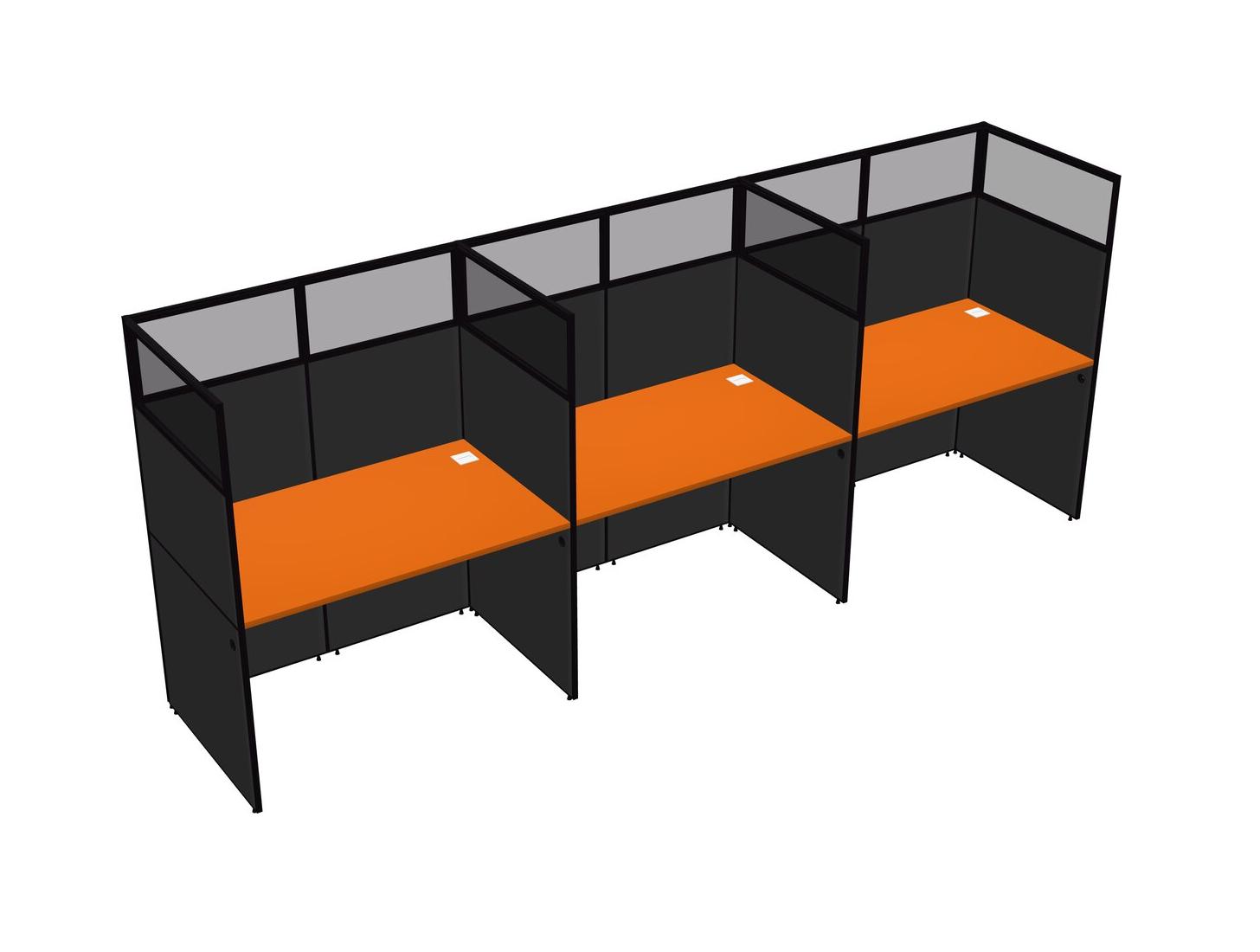 Orange Shared Rectangular Office Cubicle Panel System For 3 Persons
