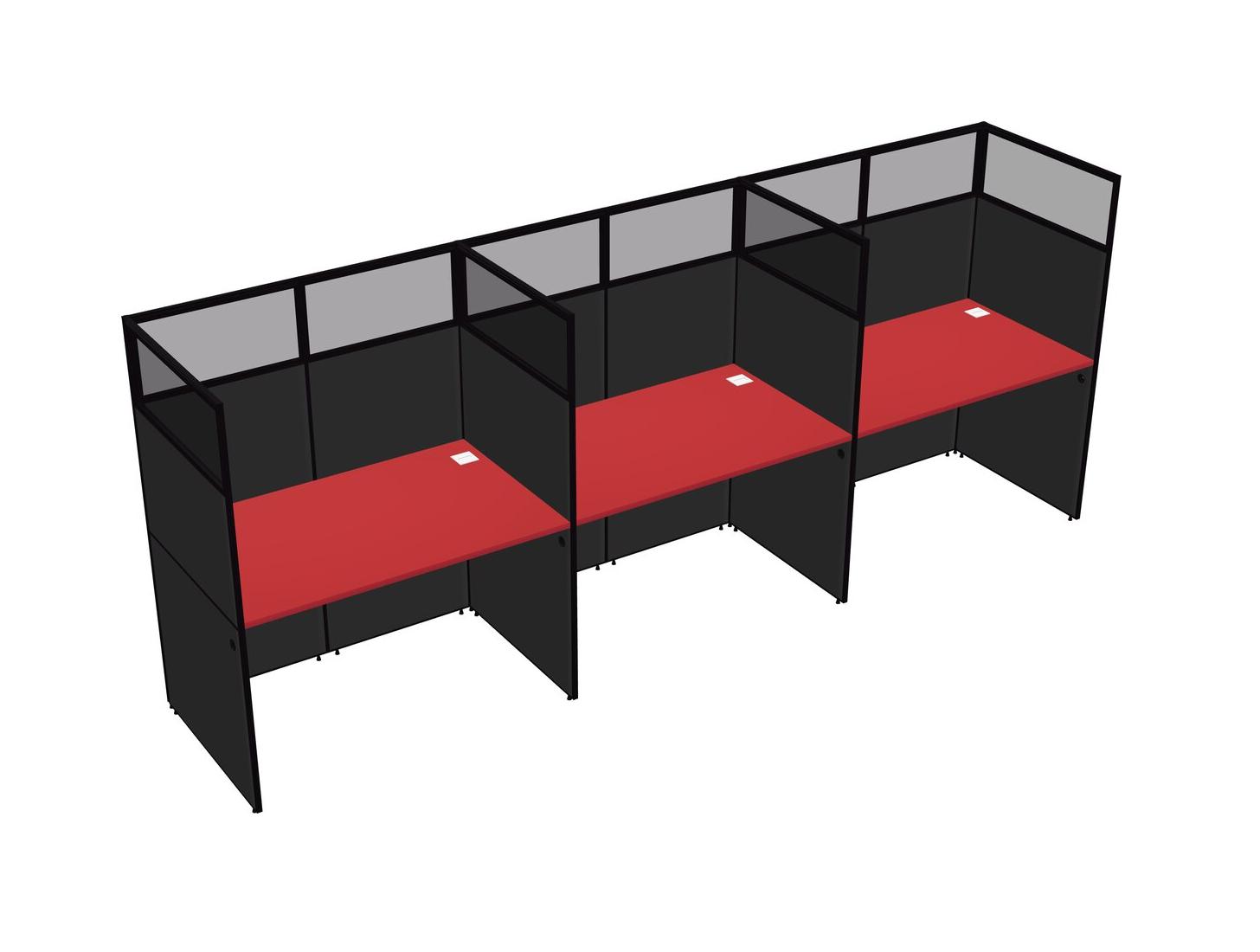 Prism Red Shared Rectangular Office Cubicle Panel System For 3 Persons