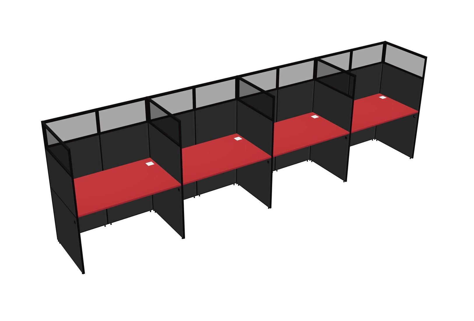 Prism Red Shared Rectangular Office Cubicle Panel System For 4 Persons