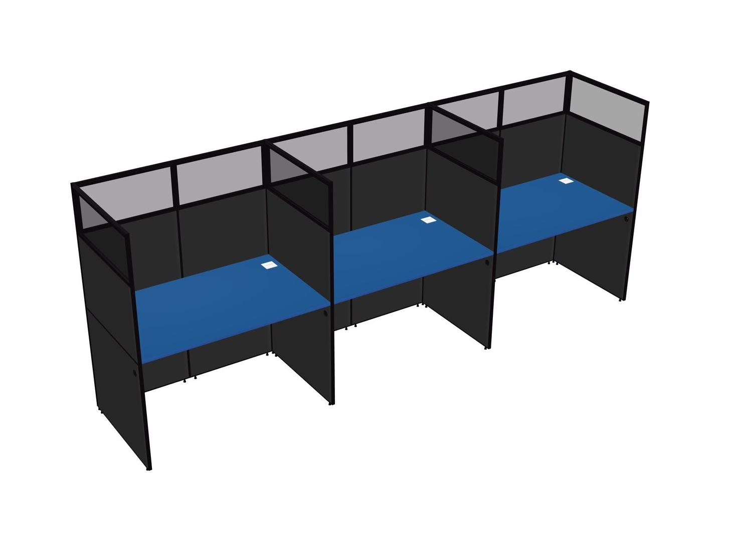 Prism Blue Shared Rectangular Office Cubicle Panel System For 3 Persons