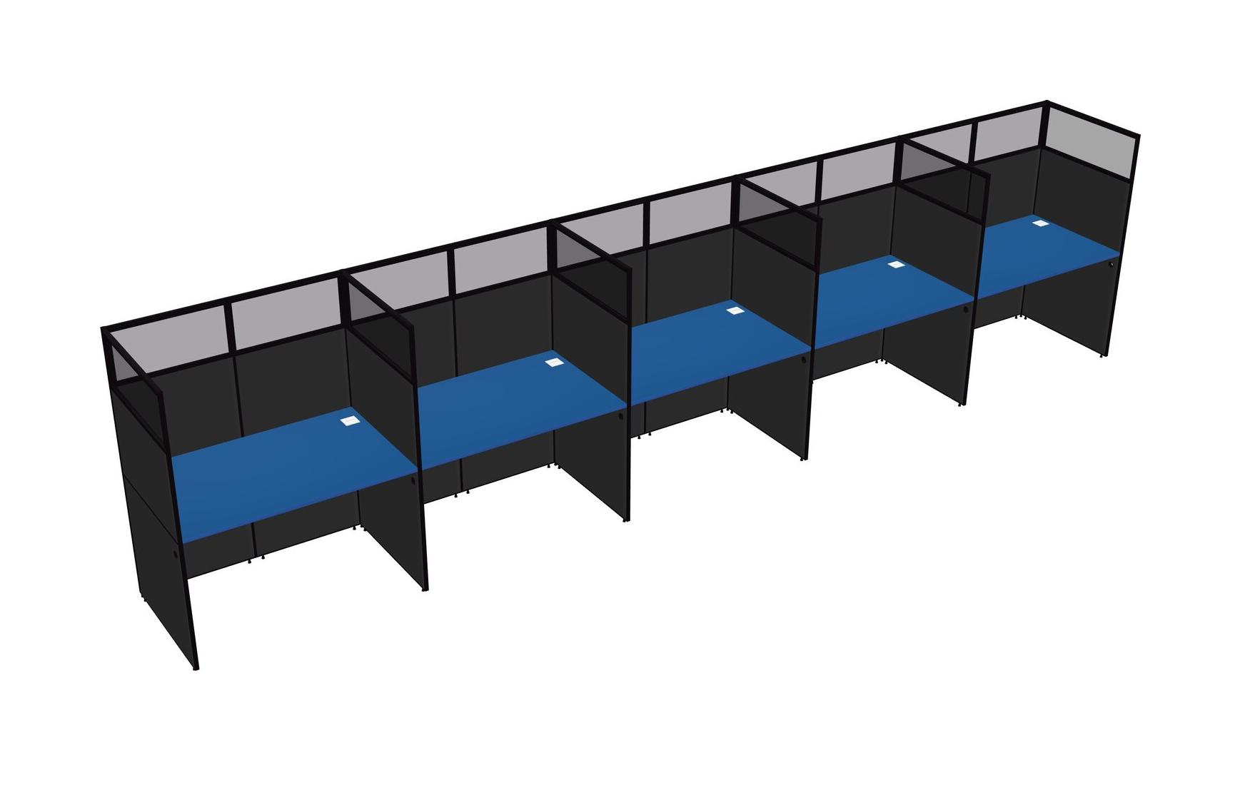 Prism Blue Shared Rectangular Office Cubicle Panel System For 5 Persons