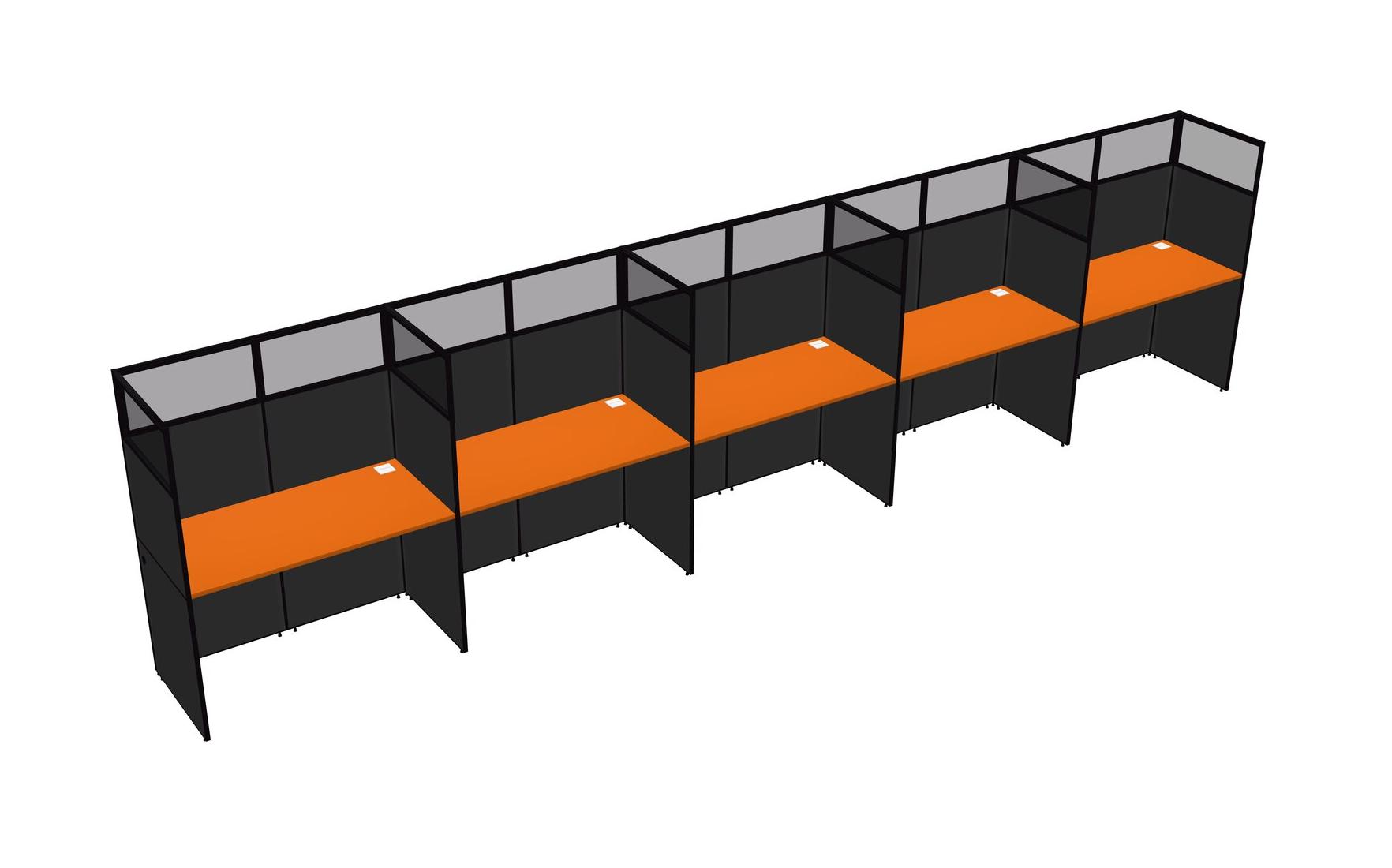 Orange Shared Rectangular Office Cubicle Panel System For 5 Persons