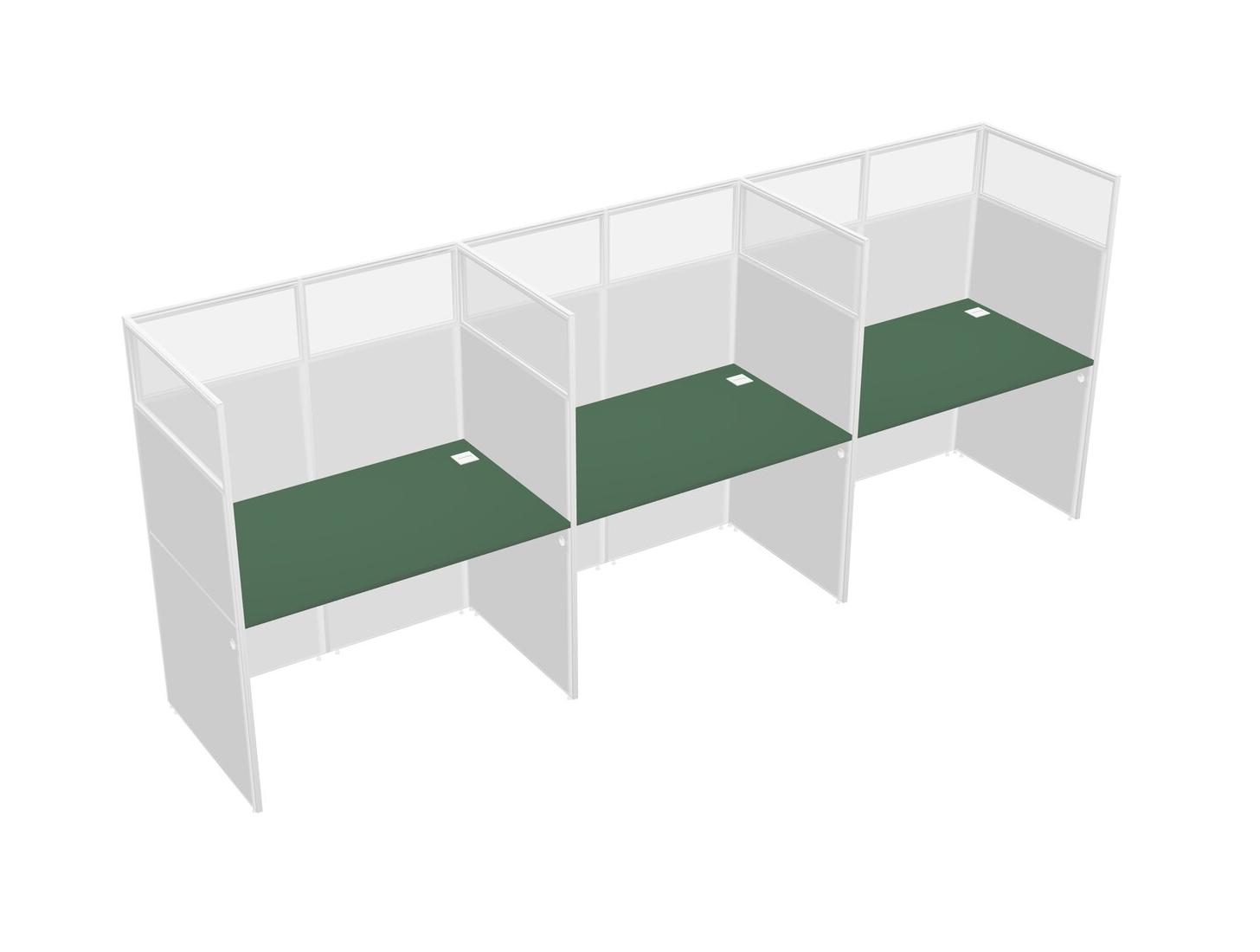 Green Shared Rectangular Office Cubicle Panel System For 3 Persons