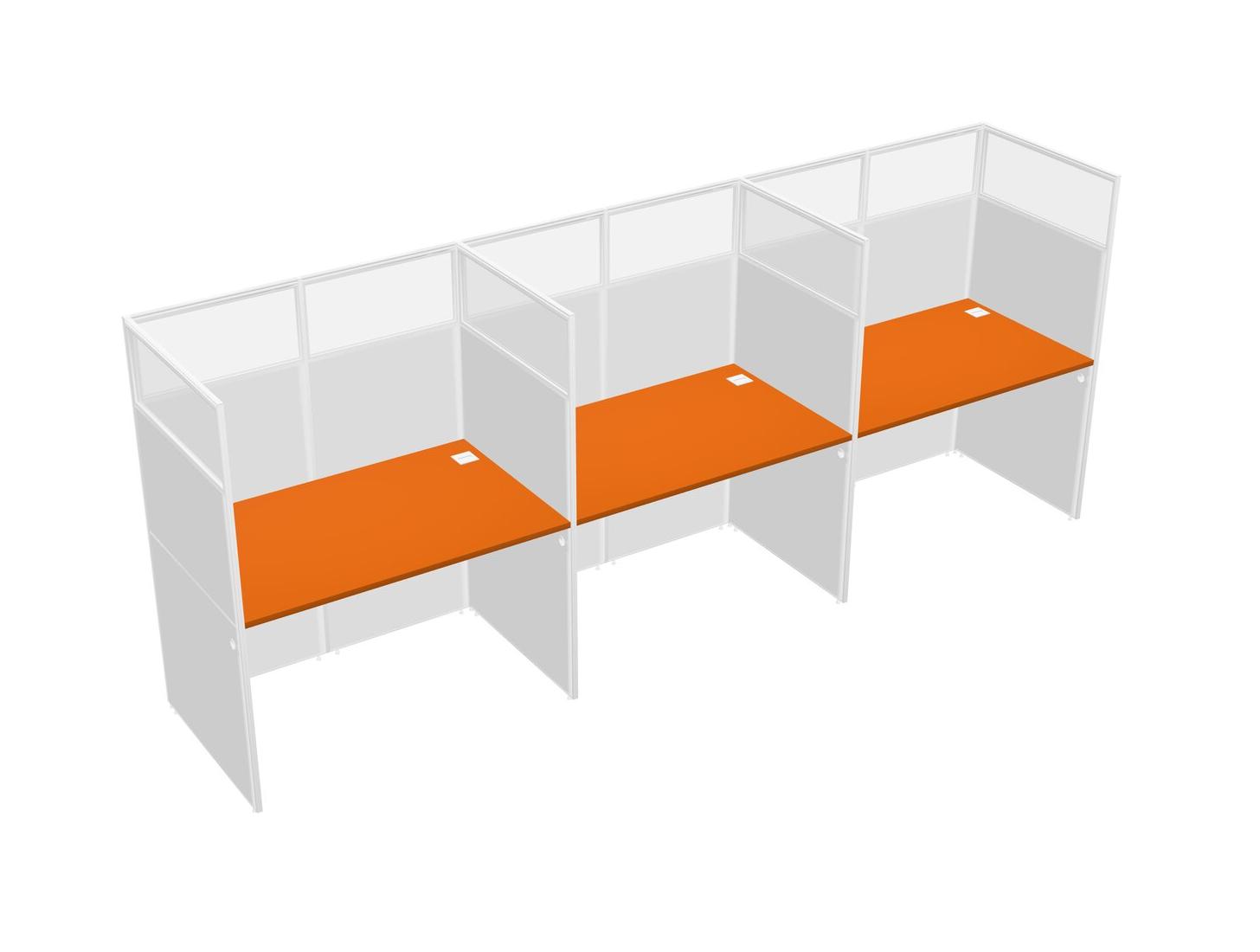 Orange Shared Rectangular Office Cubicle Panel System For 3 Persons