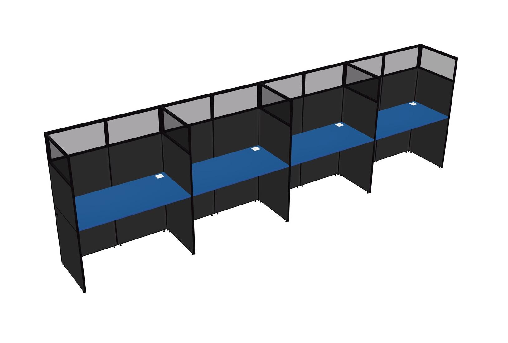 Prism Blue Shared Rectangular Office Cubicle Panel System For 4 Persons
