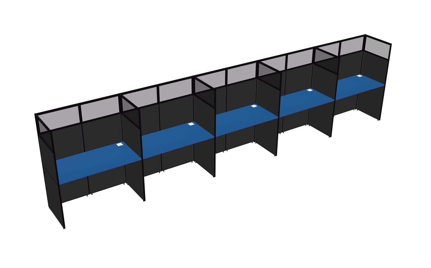 Prism Blue Shared Rectangular Office Cubicle Panel System For 5 Persons
