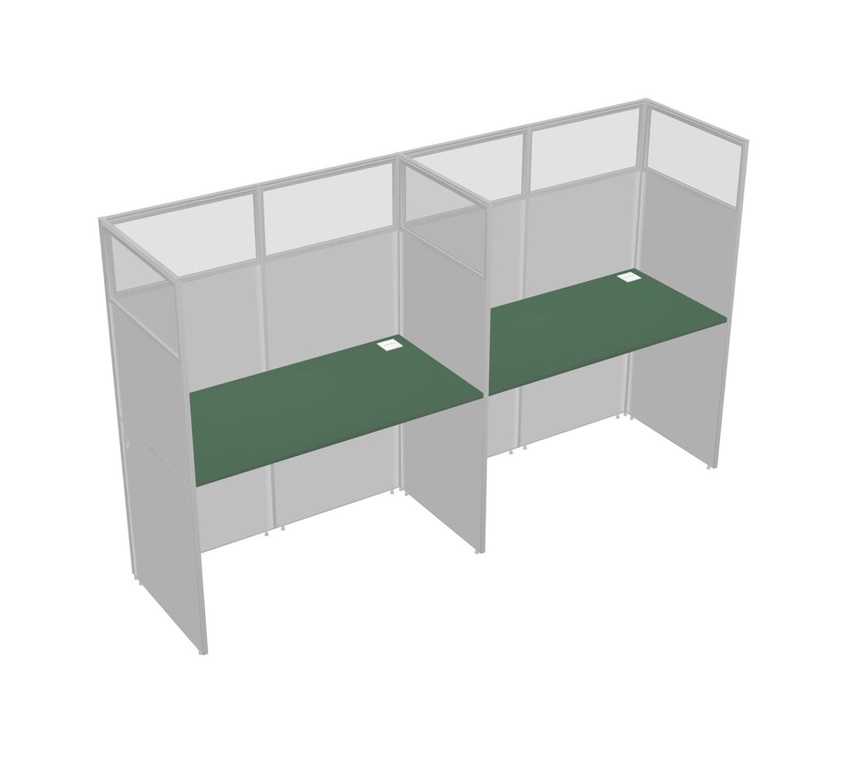 Green Shared Rectangular Office Cubicle Panel System For 2 Persons
