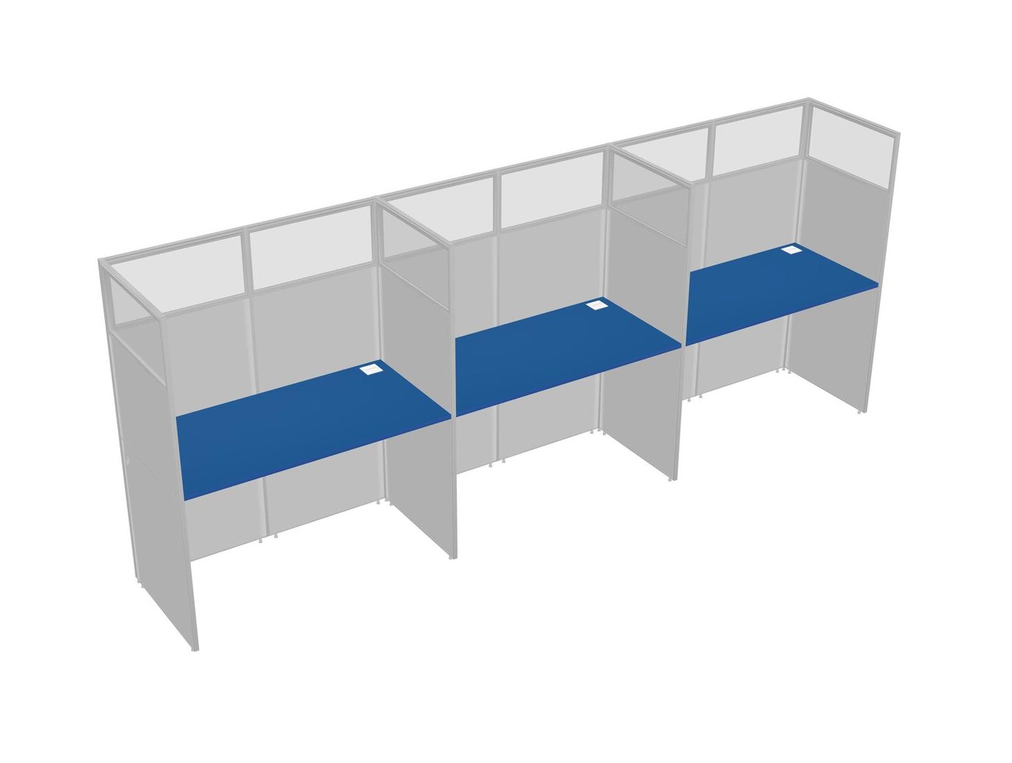 Prism Blue Shared Rectangular Office Cubicle Panel System For 3 Persons