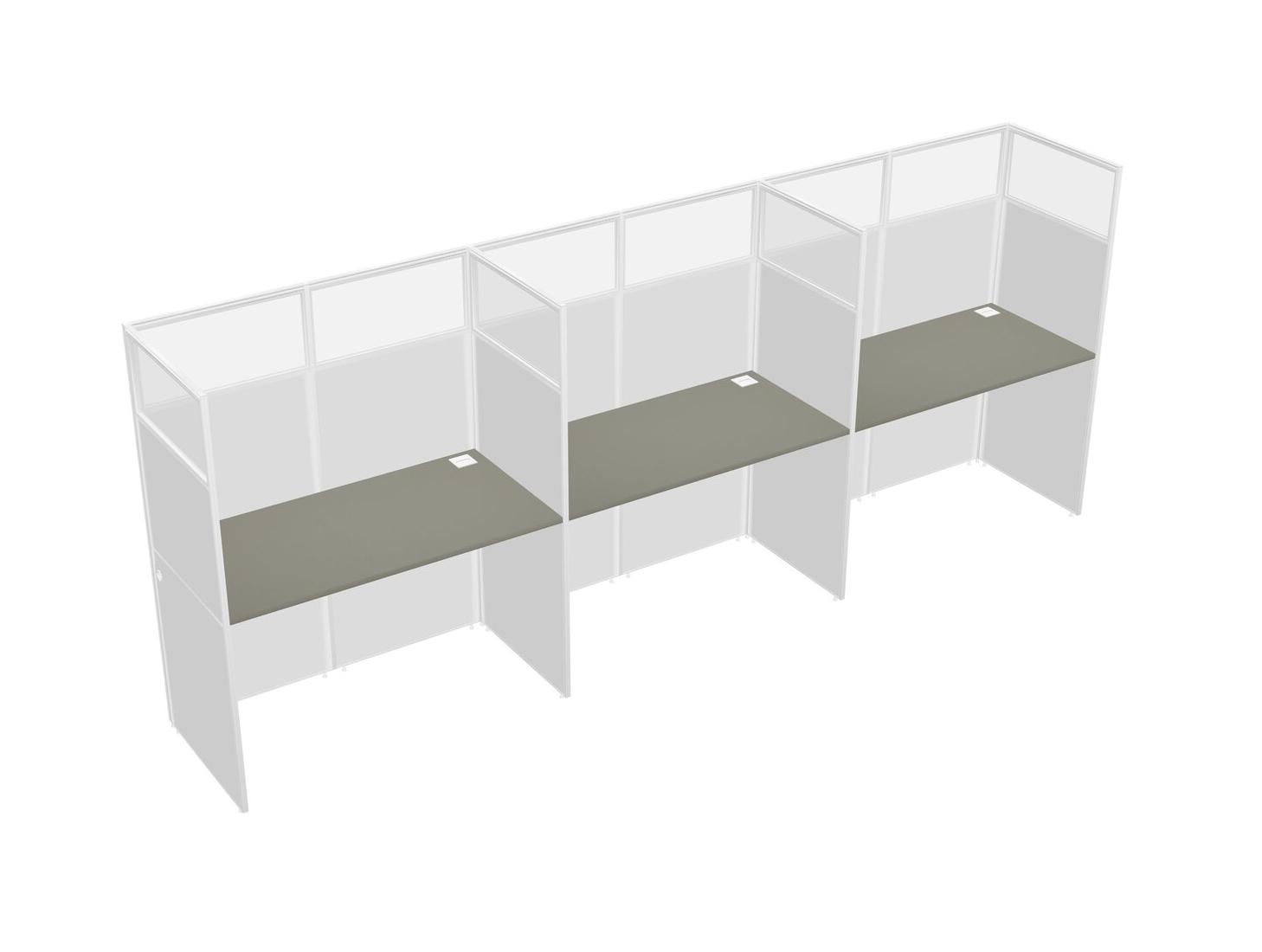 Grey Shadows Shared Rectangular Office Cubicle Panel System For 3 Persons