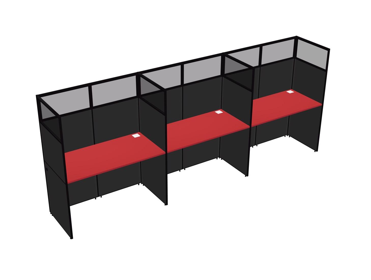 Prism Red Shared Rectangular Office Cubicle Panel System For 3 Persons