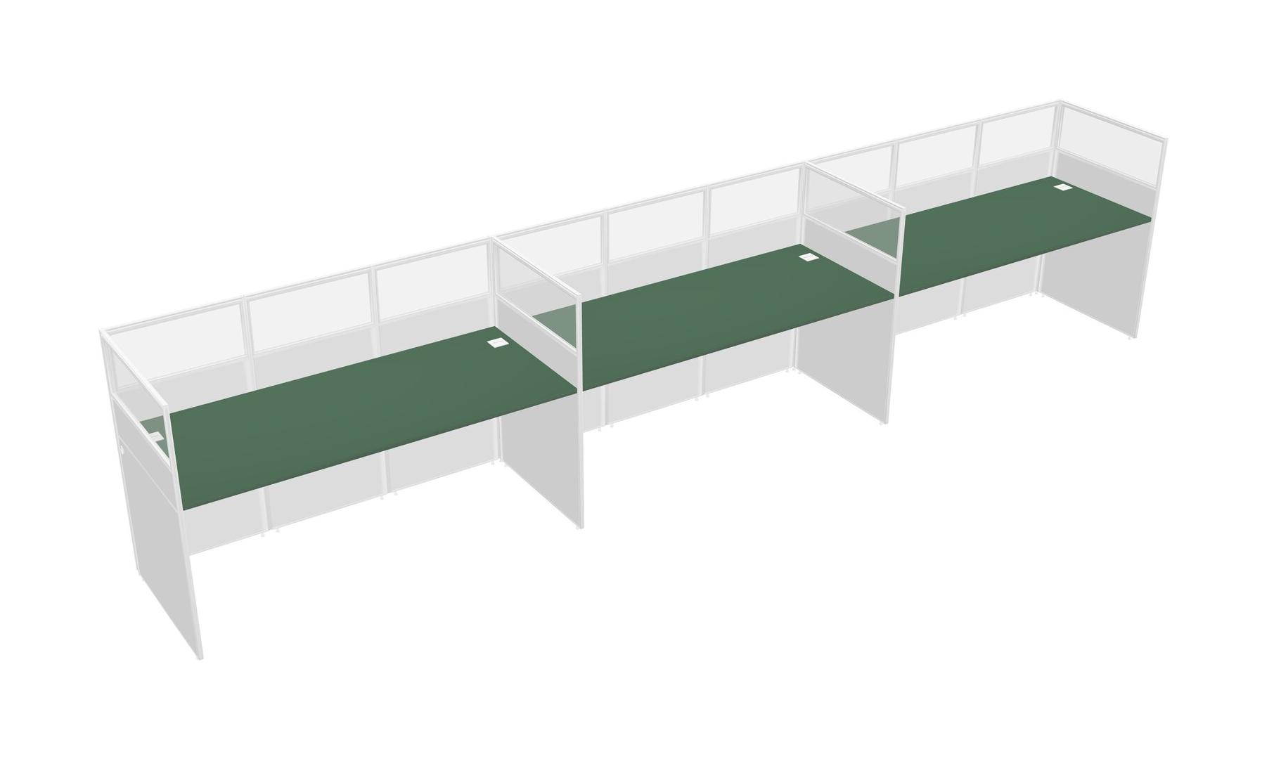 Green Shared Rectangular Office Cubicle Panel System For 3 Persons