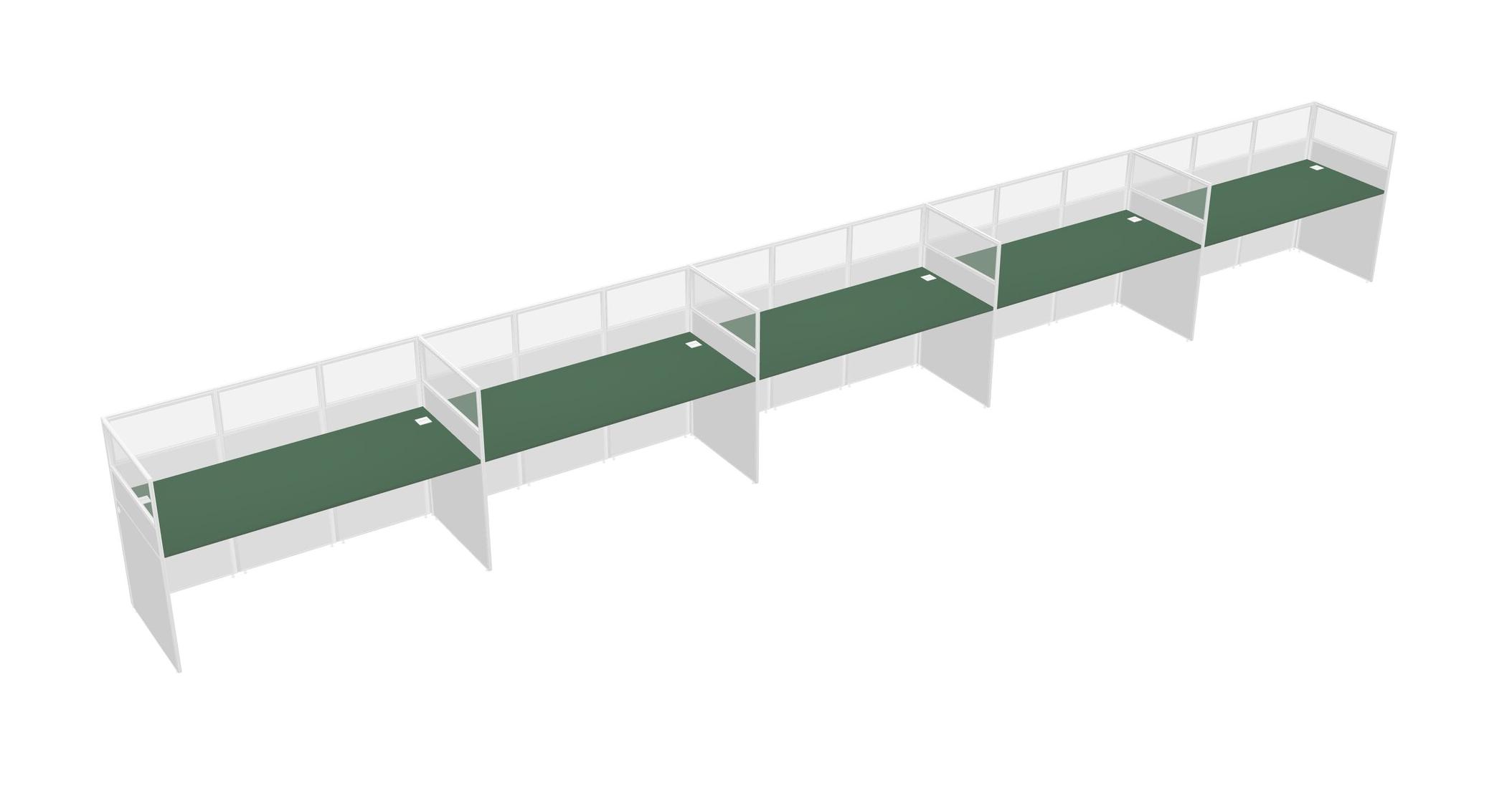 Green Shared Rectangular Office Cubicle Panel System For 5 Persons