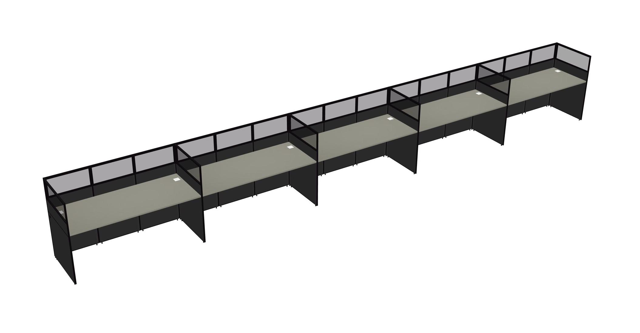 Grey Shadows Shared Rectangular Office Cubicle Panel System For 5 Persons