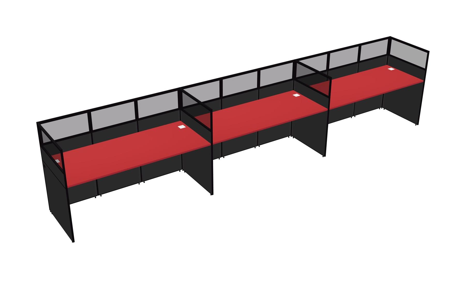 Prism Red Shared Rectangular Office Cubicle Panel System For 3 Persons