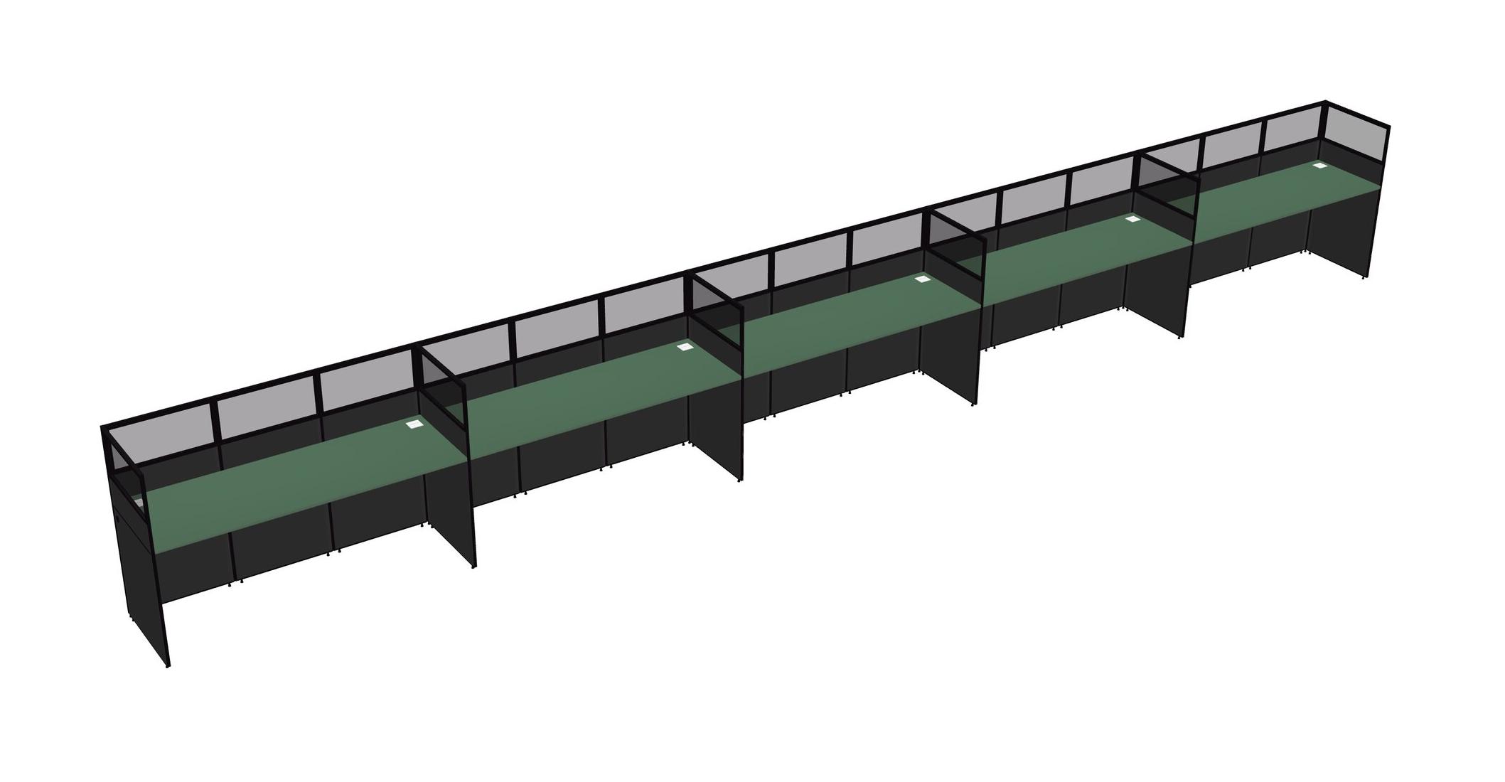 Green Shared Rectangular Office Cubicle Panel System For 5 Persons