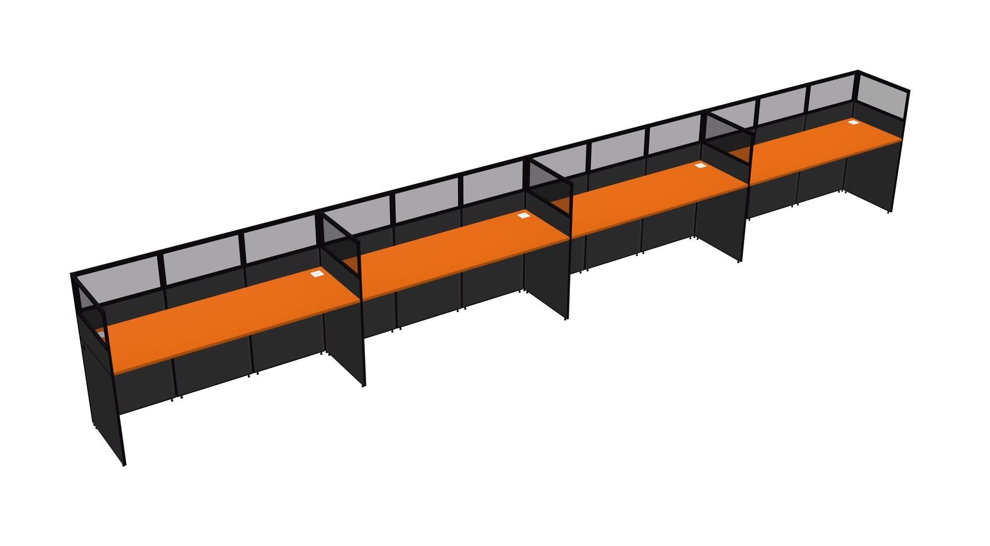 Orange Shared Rectangular Office Cubicle Panel System For 4 Persons