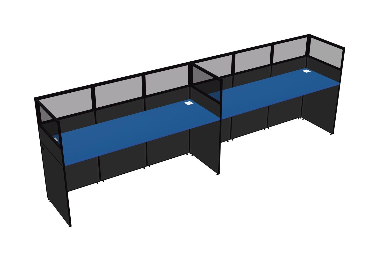 Prism Blue Shared Rectangular Office Cubicle Panel System For 2 Persons