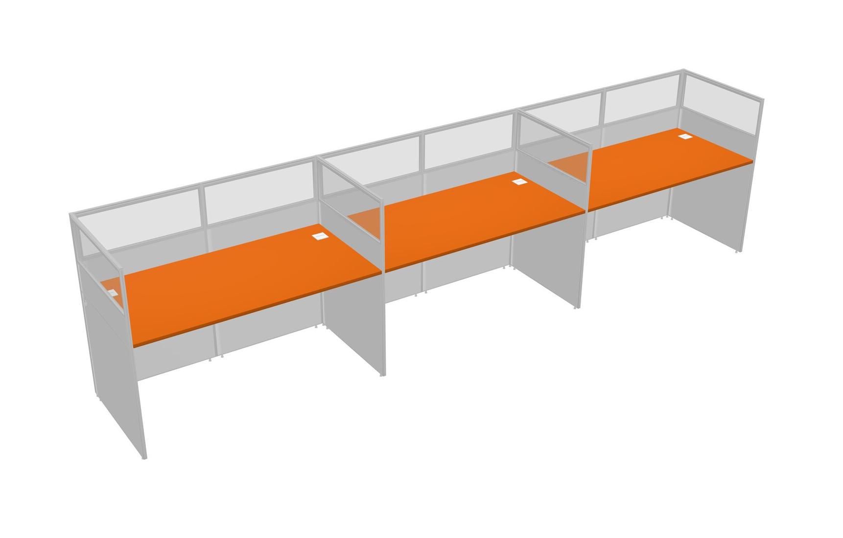 Orange Shared Rectangular Office Cubicle Panel System For 3 Persons