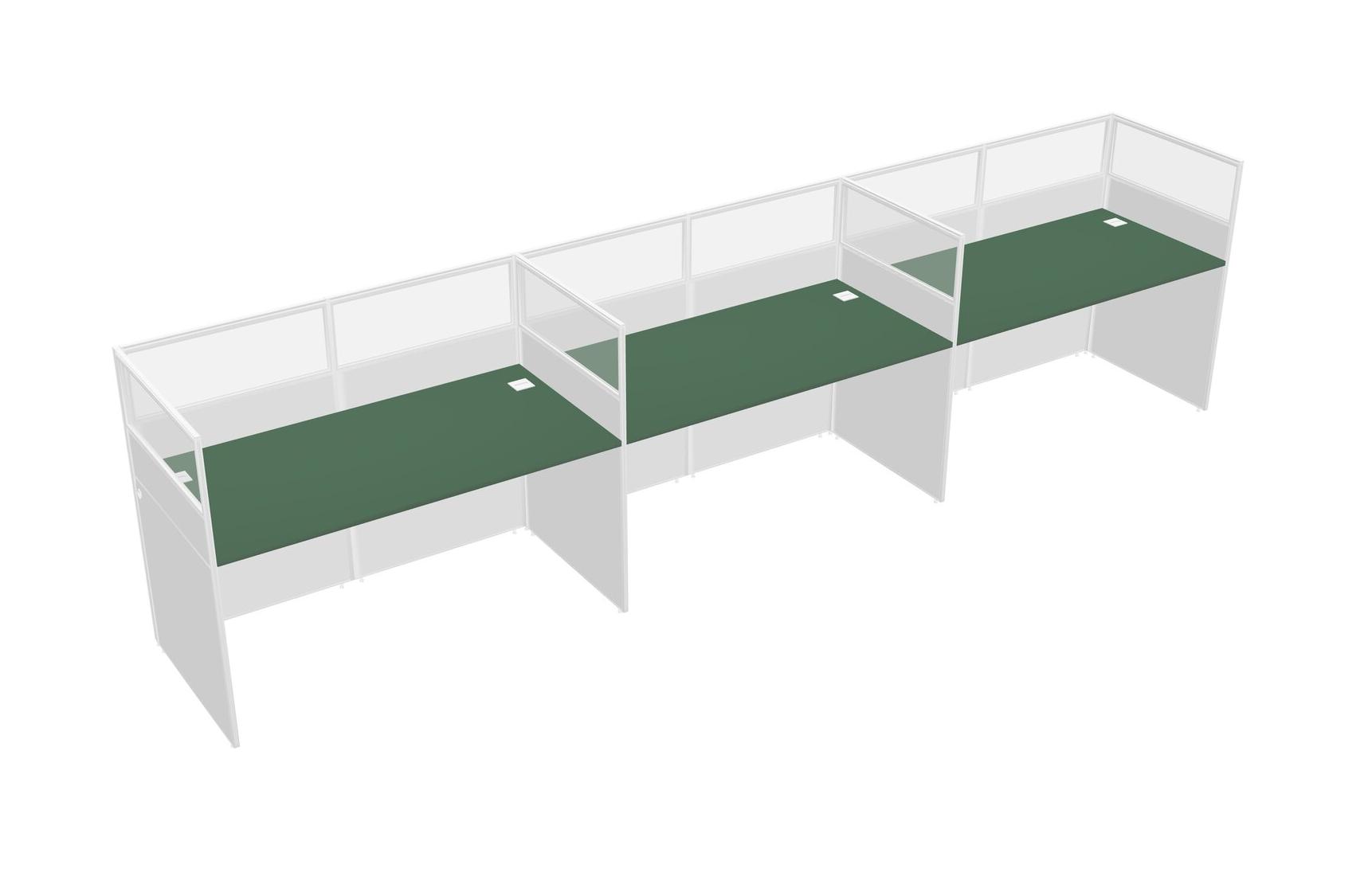 Green Shared Rectangular Office Cubicle Panel System For 3 Persons