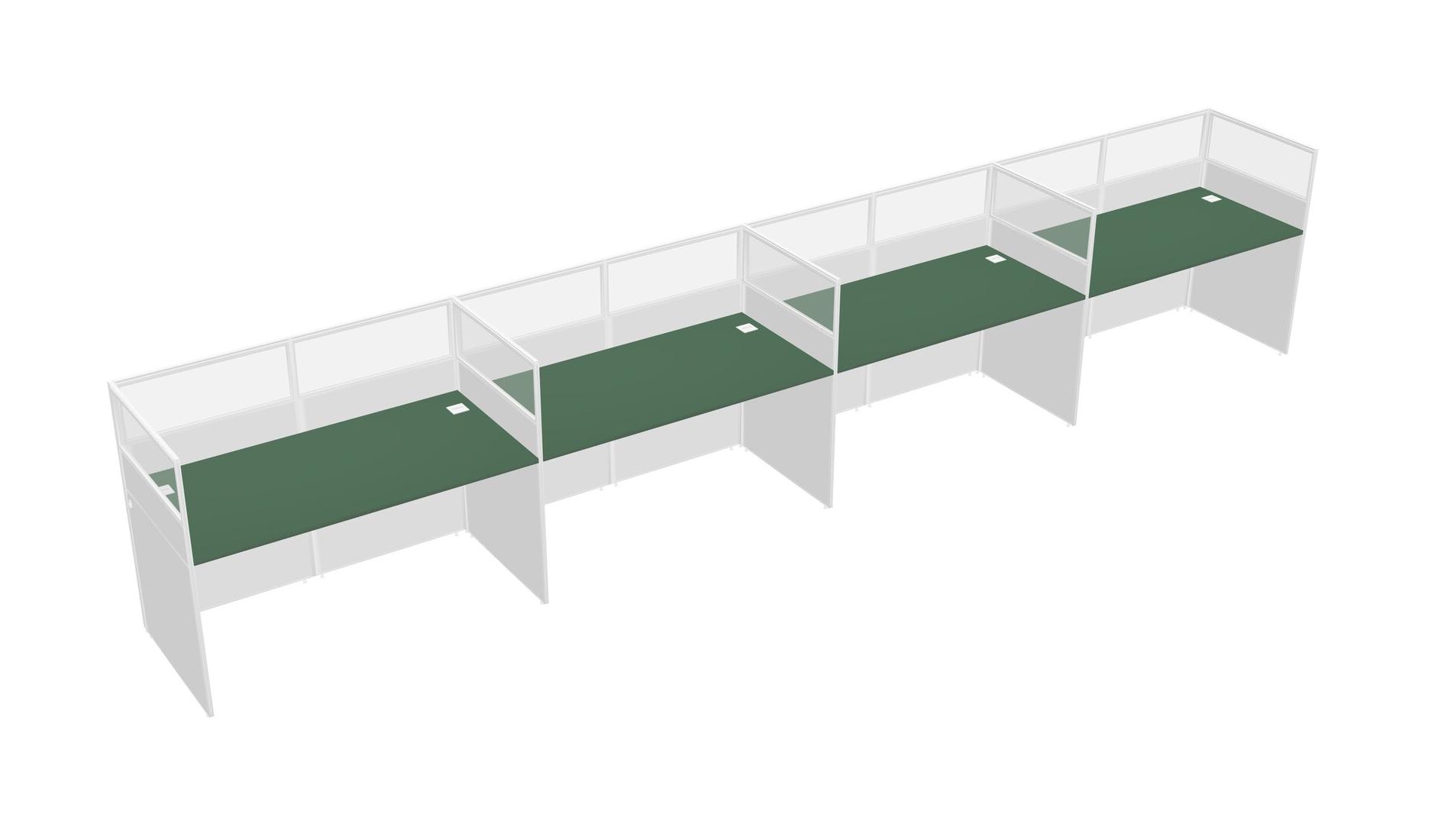 Green Shared Rectangular Office Cubicle Panel System For 4 Persons