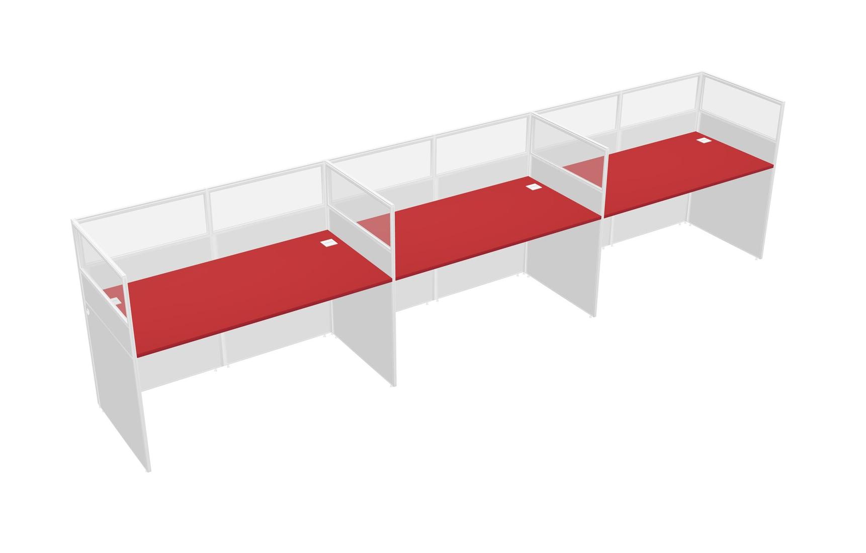 Prism Red Shared Rectangular Office Cubicle Panel System For 3 Persons
