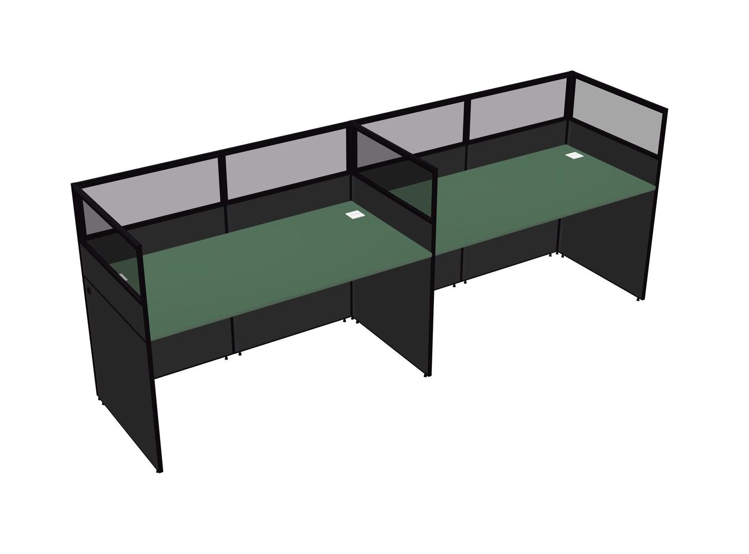 Green Shared Rectangular Office Cubicle Panel System For 2 Persons