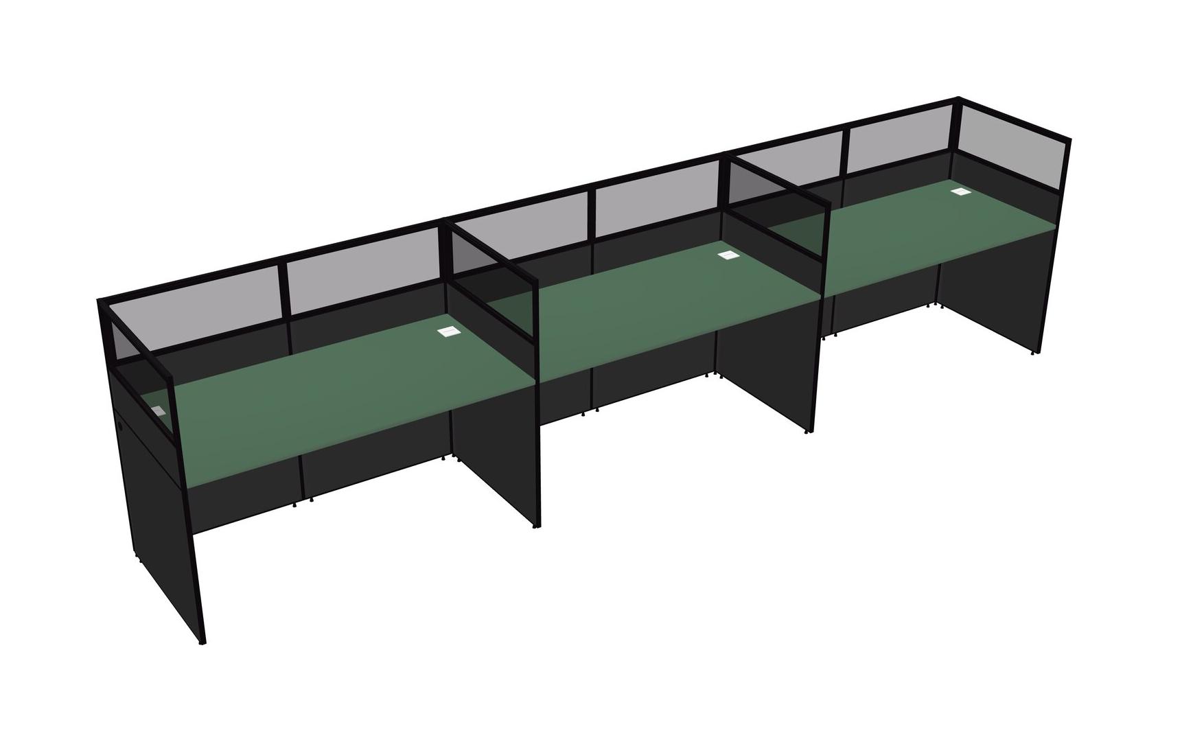 Green Shared Rectangular Office Cubicle Panel System For 3 Persons