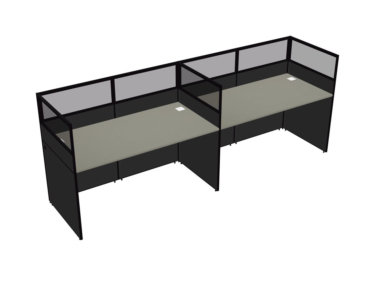 Grey Shadows Shared Rectangular Office Cubicle Panel System For 2 Persons