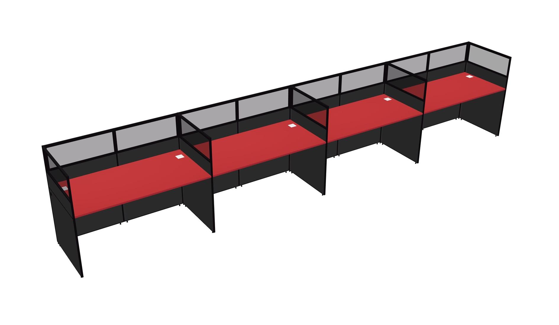 Prism Red Shared Rectangular Office Cubicle Panel System For 4 Persons