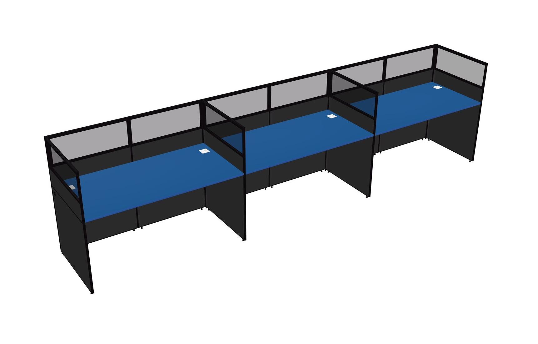 Prism Blue Shared Rectangular Office Cubicle Panel System For 3 Persons