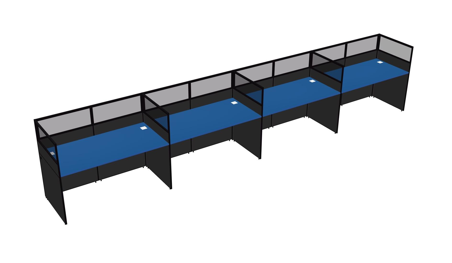 Prism Blue Shared Rectangular Office Cubicle Panel System For 4 Persons