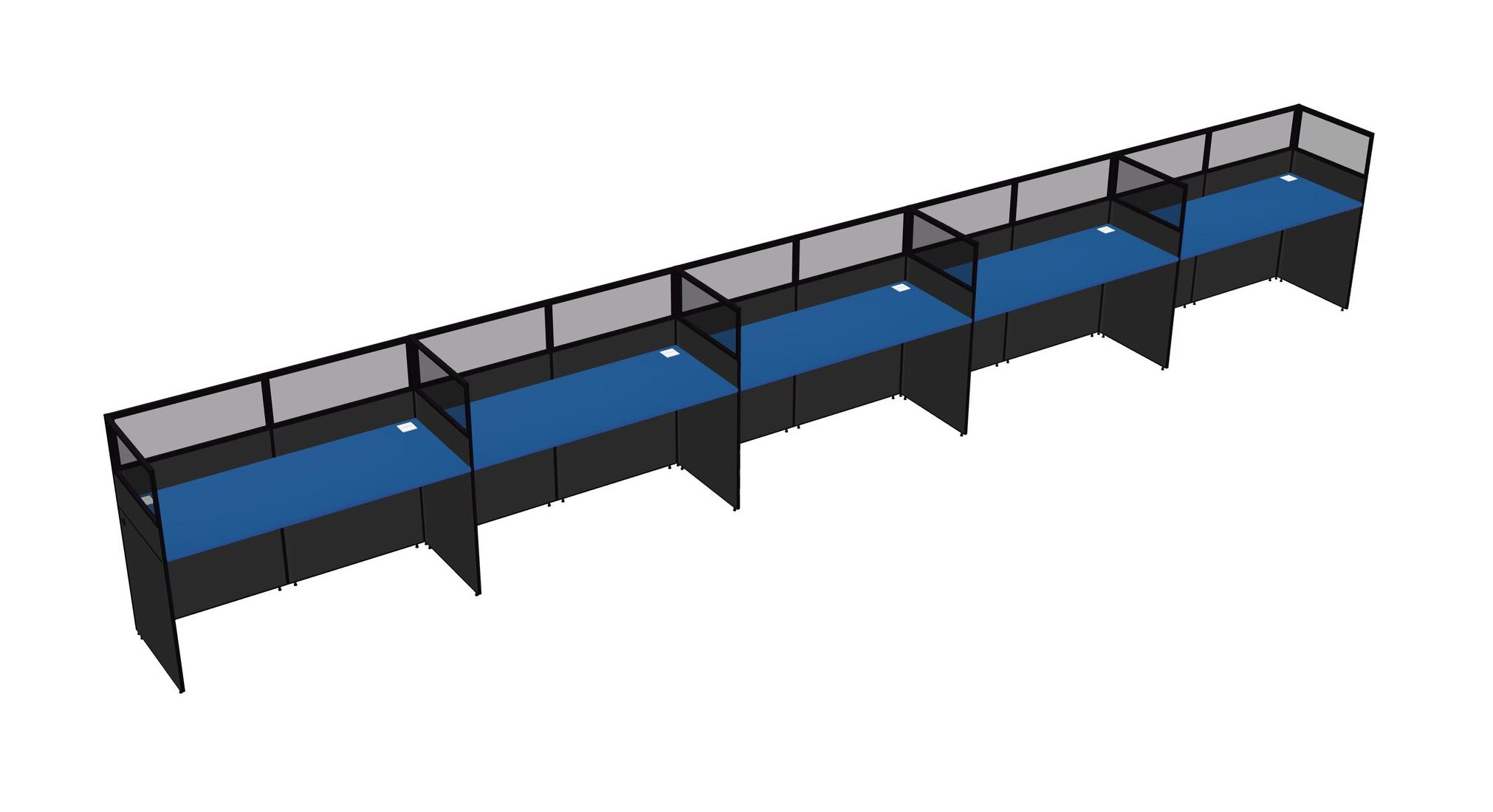 Prism Blue Shared Rectangular Office Cubicle Panel System For 5 Persons