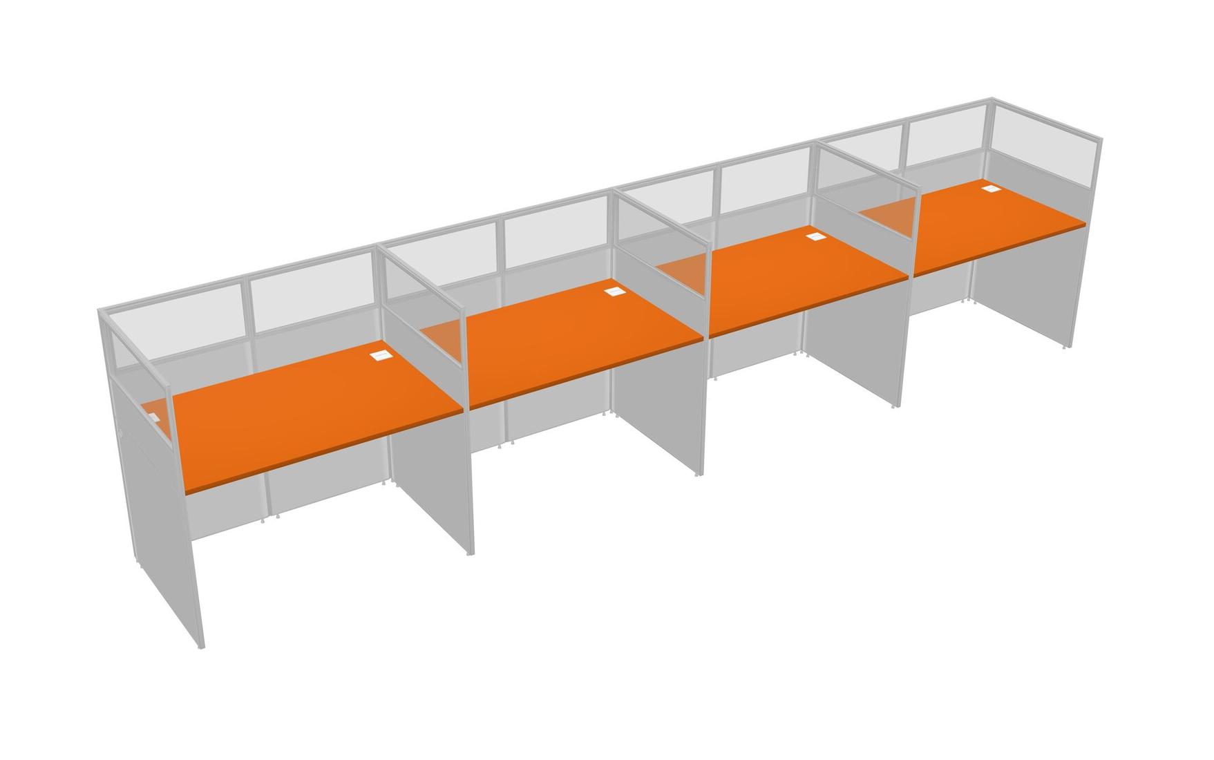 Orange Shared Rectangular Office Cubicle Panel System For 4 Persons