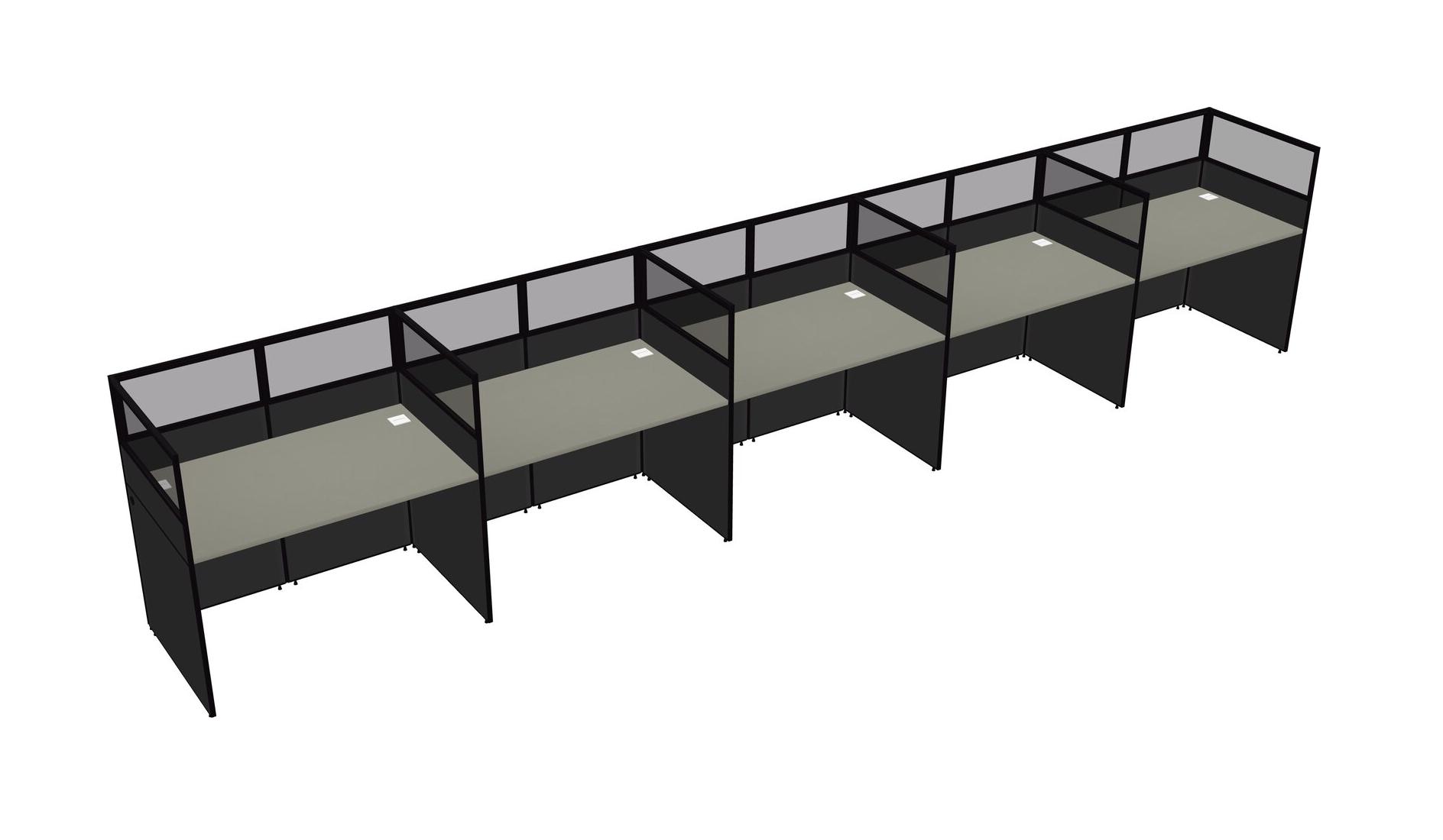 Grey Shadows Shared Rectangular Office Cubicle Panel System For 5 Persons