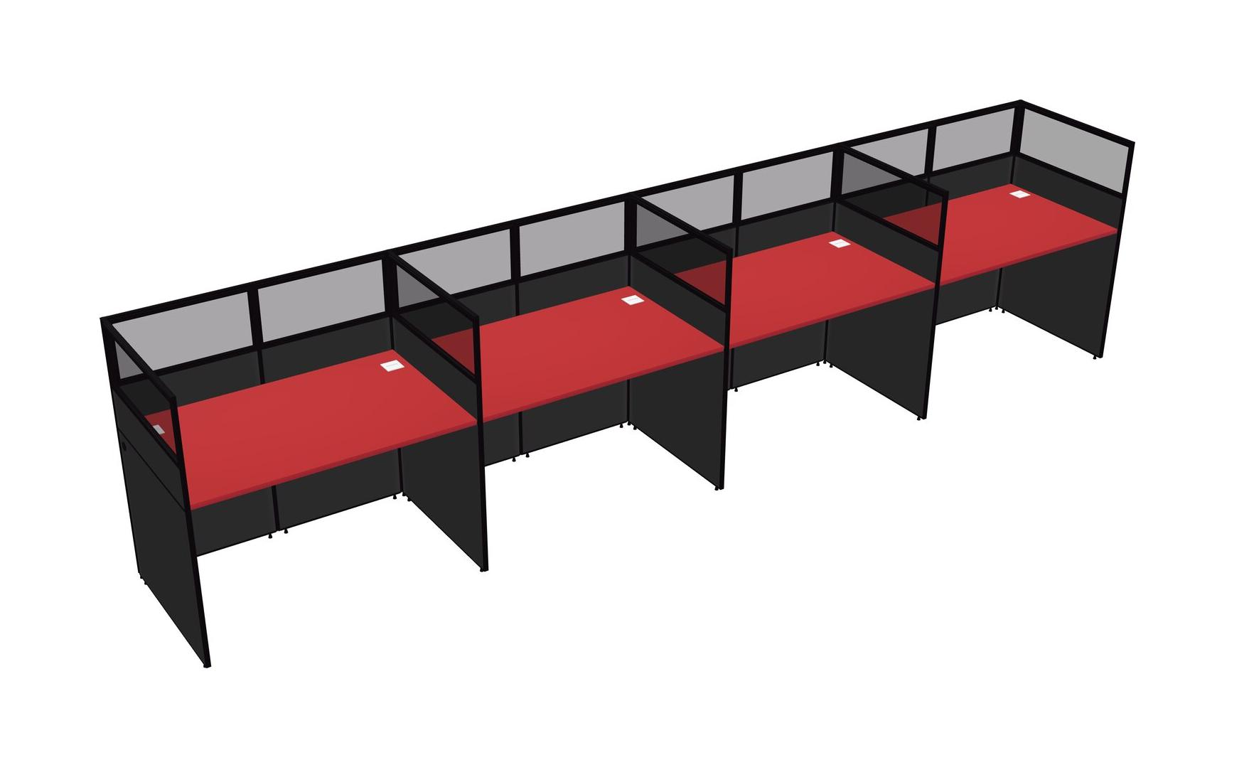 Prism Red Shared Rectangular Office Cubicle Panel System For 4 Persons