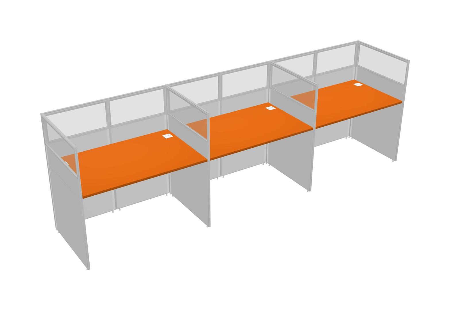 Orange Shared Rectangular Office Cubicle Panel System For 3 Persons