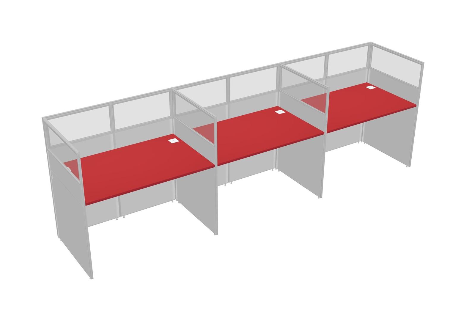 Prism Red Shared Rectangular Office Cubicle Panel System For 3 Persons