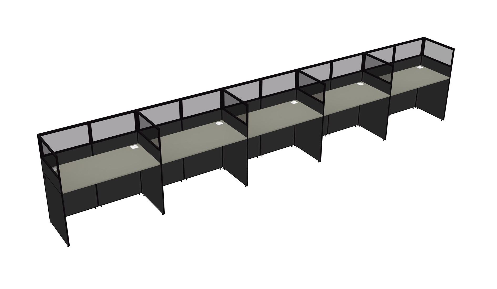 Grey Shadows Shared Rectangular Office Cubicle Panel System For 5 Persons