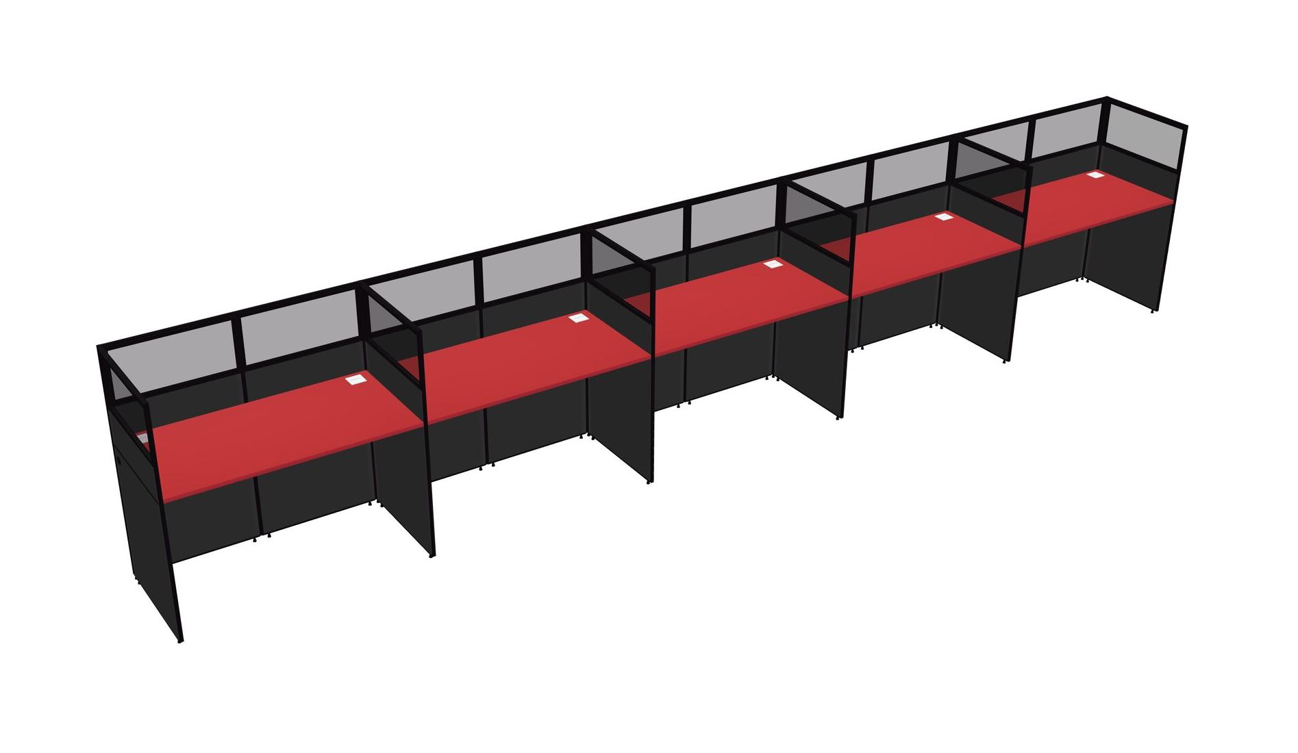 Prism Red Shared Rectangular Office Cubicle Panel System For 5 Persons